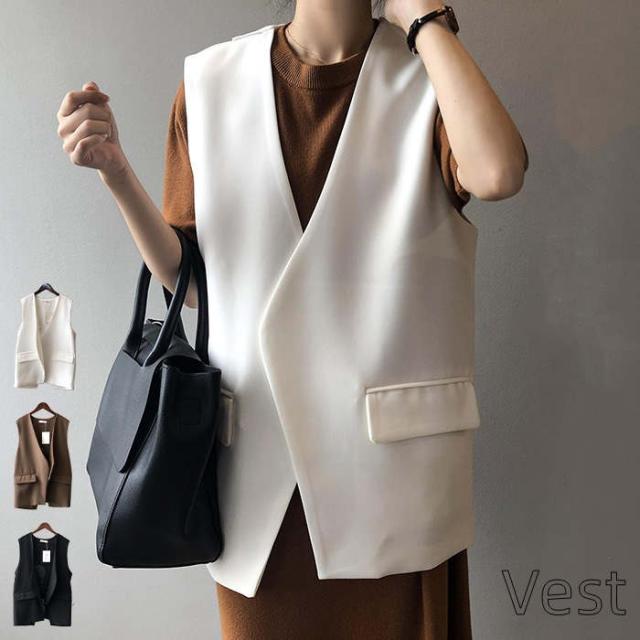 ベスト レディース 前開き ジレ 春 トップス ベスト 早い者勝ち ホワイト ブラック ブラウン S M L
