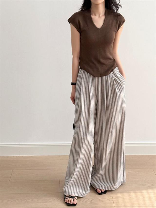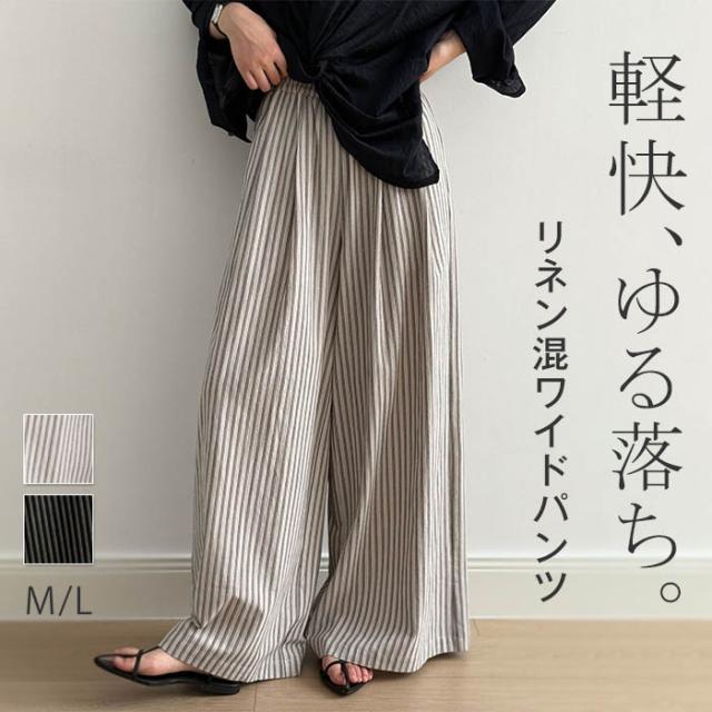 ストライプパンツ レディース 春 夏 ボトムス パンツ 続々登場 ベージュ ブラック M L