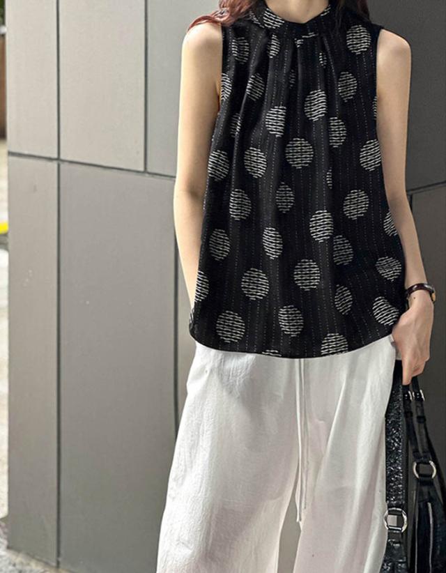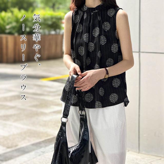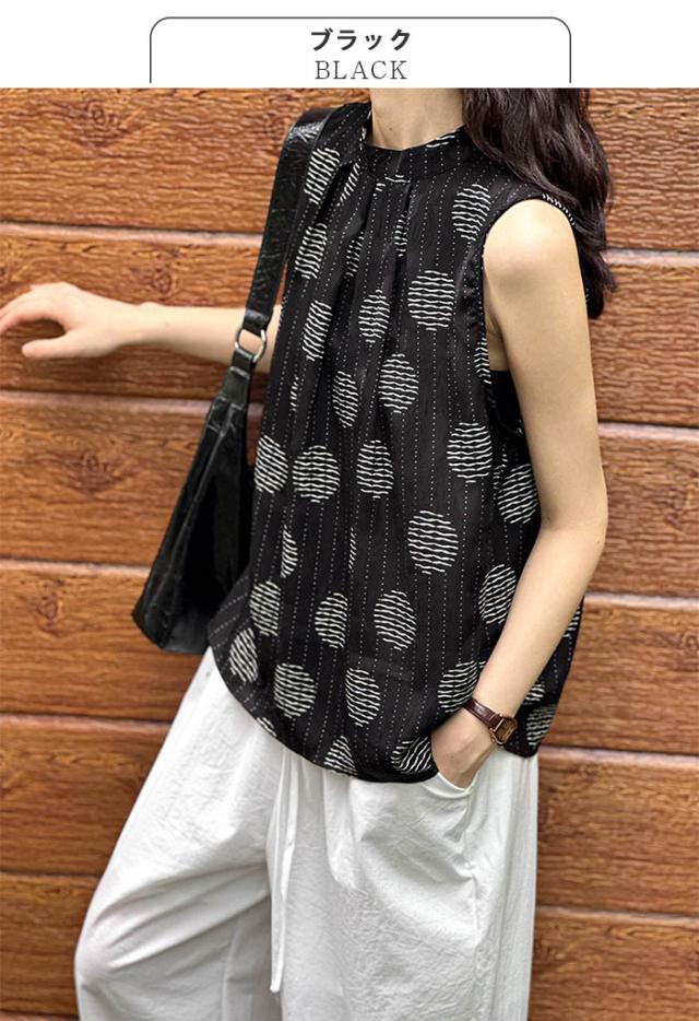 ノースリーブ ブラウス レディース トップス プルオーバー ドット柄 スタンドカラー ノースリーブブラウス デザイントップス 薄手 涼しい 爽やか ゆったり 楽ちん 楽チン カジュアル おしゃれ オシャレ 可愛い かわいい きれいめ キレイめ 大人 オトナ 上品 ガーリー フェミニン 着回し 仕事 通勤 OL 学校行事 学校 参観日 保護者会 ママ 母 母親 服装 シンプル スタンダード ベーシック オフィス カジュアル 大人 女子 華やか 30代 40代 50代 60代 真夏 夏コーデ 旅行 送料無料 春 春服 春物 25春 25春新着 春夏 夏 夏服 夏物 25夏 25夏新着 2025SS 服 新作 新着