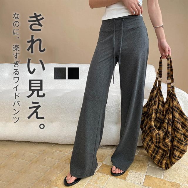 ワイドパンツ レディース ボトムス パ レディースファッション 続々登場 ブラック グレー S M L