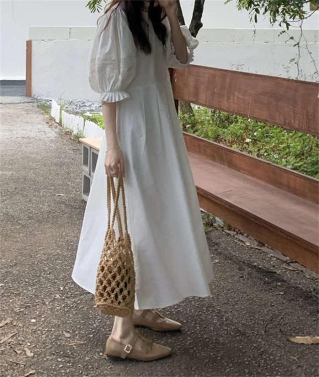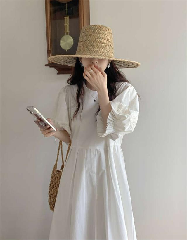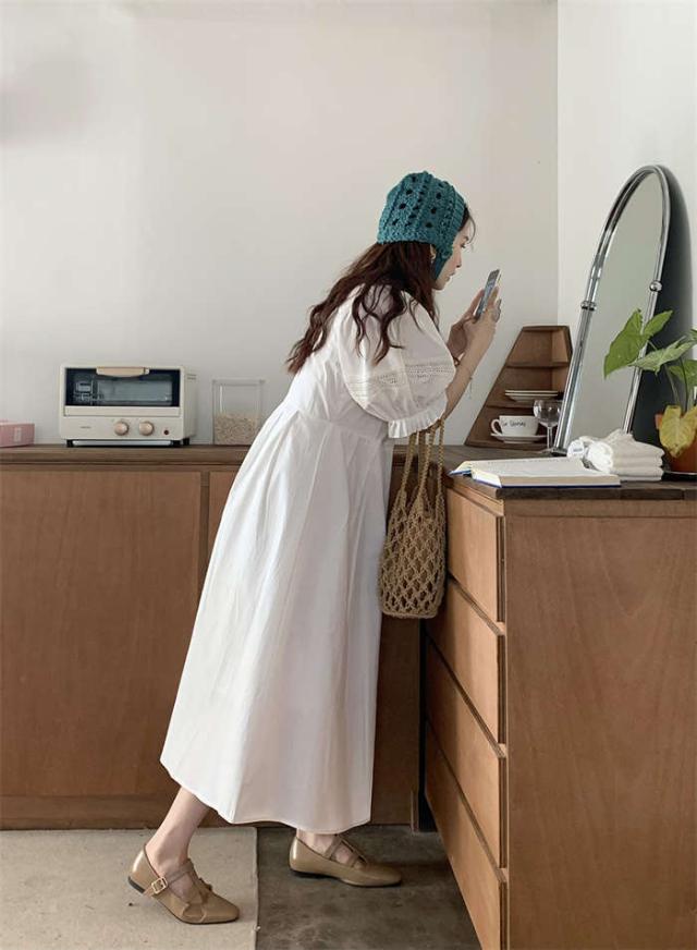 ワンピース レディース ボリューム袖 ロングワンピース きれいめ ロング 五分袖 七分袖 夏 春 マキシワンピ ワンピ ロング丈 マキシ丈 フレア フレアワンピ ミモレ 無地 裏地付き 袖ポ Aライン