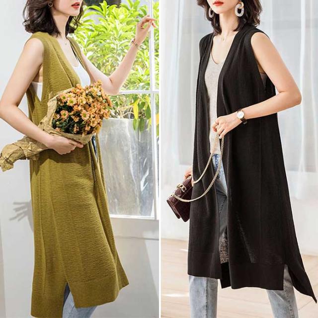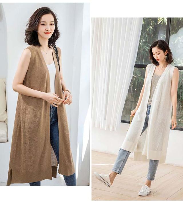 ジレ レディース 夏 ロング ノースリーブ ベスト レーヨン ポリエステル 春夏にサラッと羽織られる ベストのようなノースリーブカーディガン!冷感 ノーボタン 洗濯可能なサマーニット お出かけ おしゃれ 旅行 きれいめ カジュアル ジレ ロングジレ定番 20代 30代 40代 50代 pp-dj-034