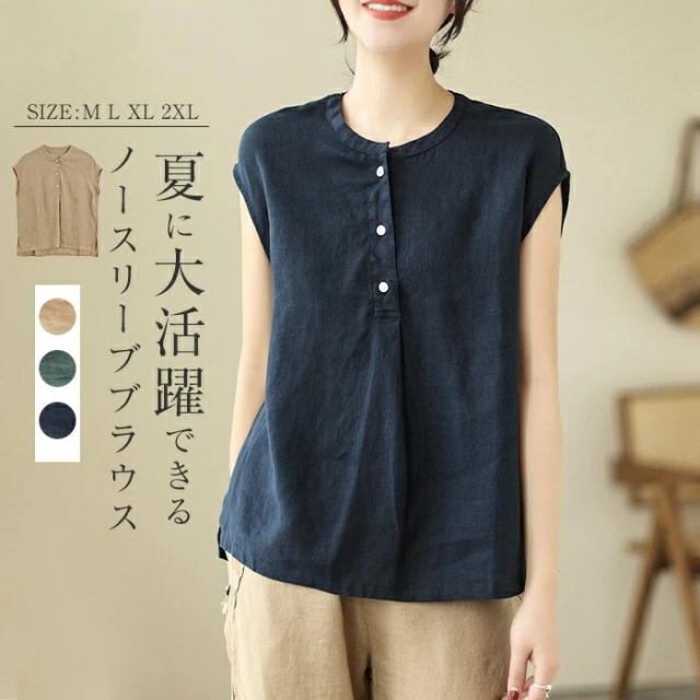 シャツ ブラウス レディース ノースリ トップス シャツ ブラウス 新登場! ダークグリーン ネイビー キャメル M L XL 2XL