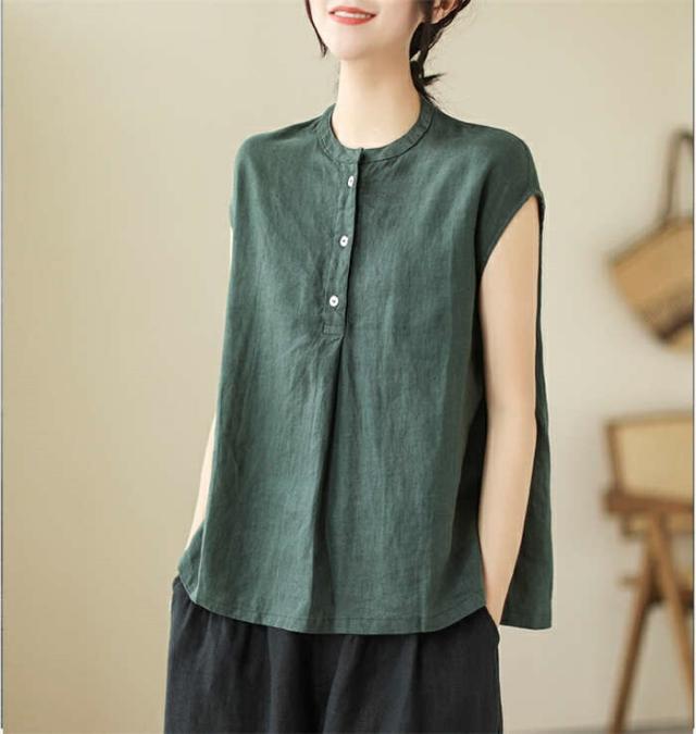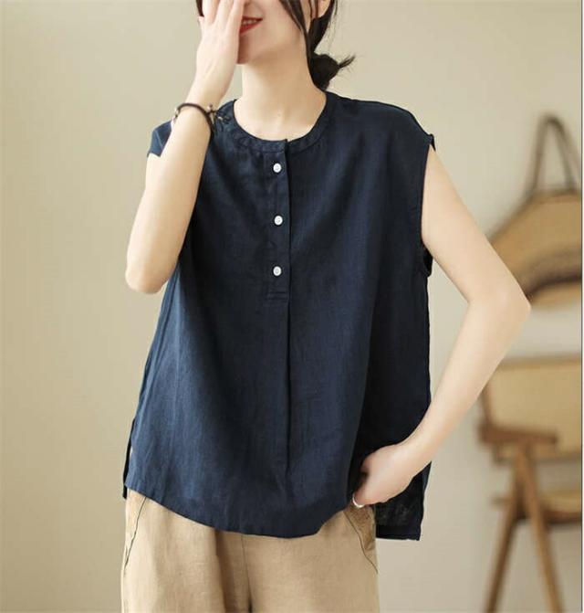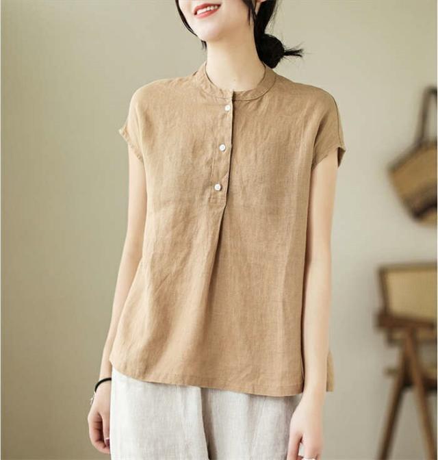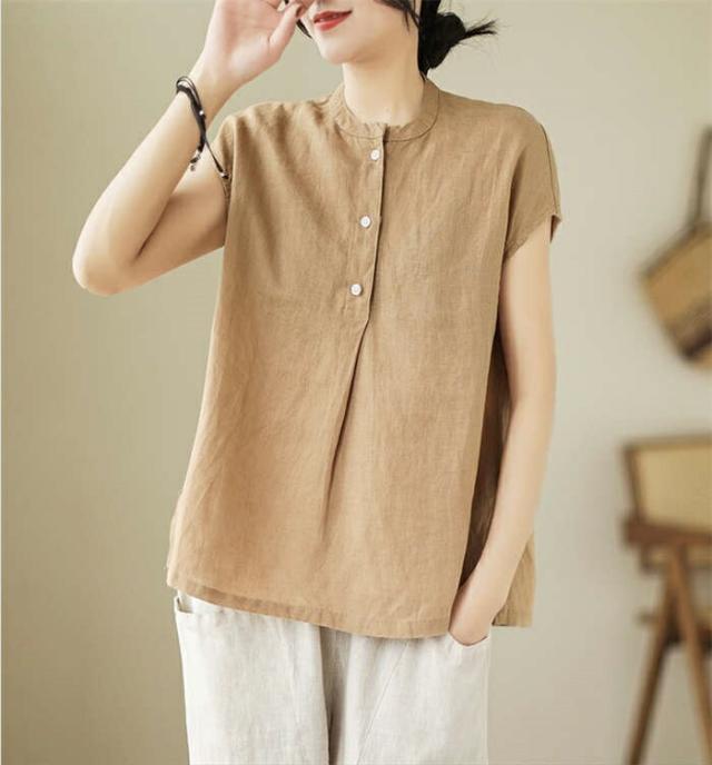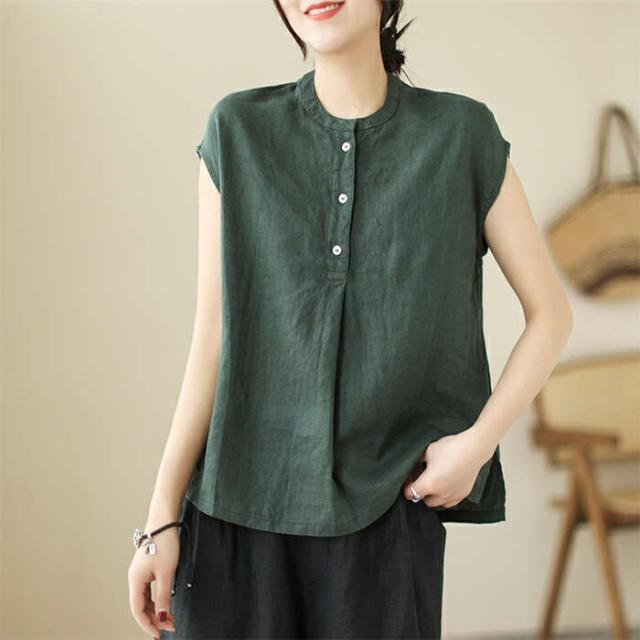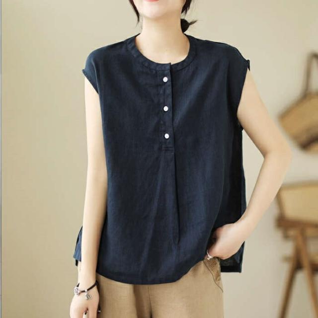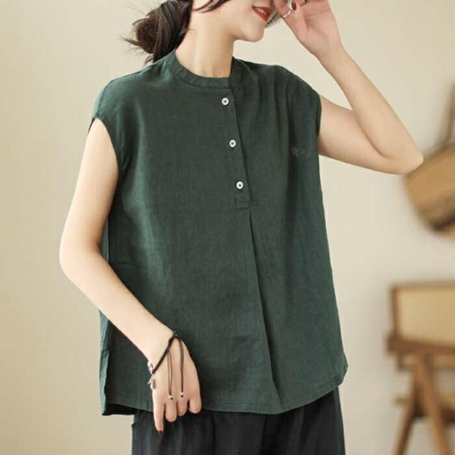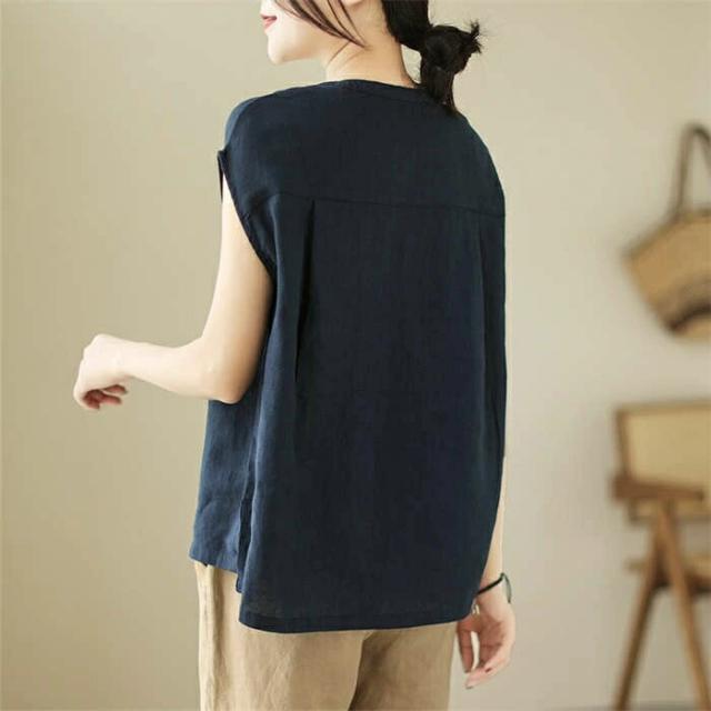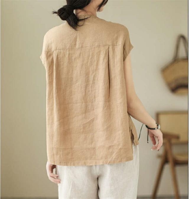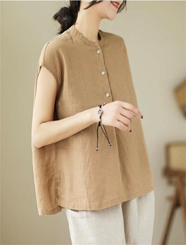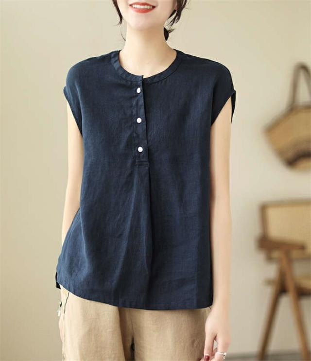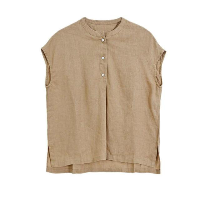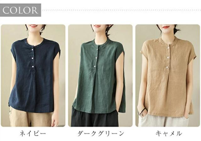 シャツ ブラウス レディース ノースリーブ 綿麻調 フレンチスリーブ シャツブラウス コットンリネン 無地 春 夏 ボタン 薄手 通勤 プルオーバー トップス 体型カバー ゆったり カジュア tシャツ