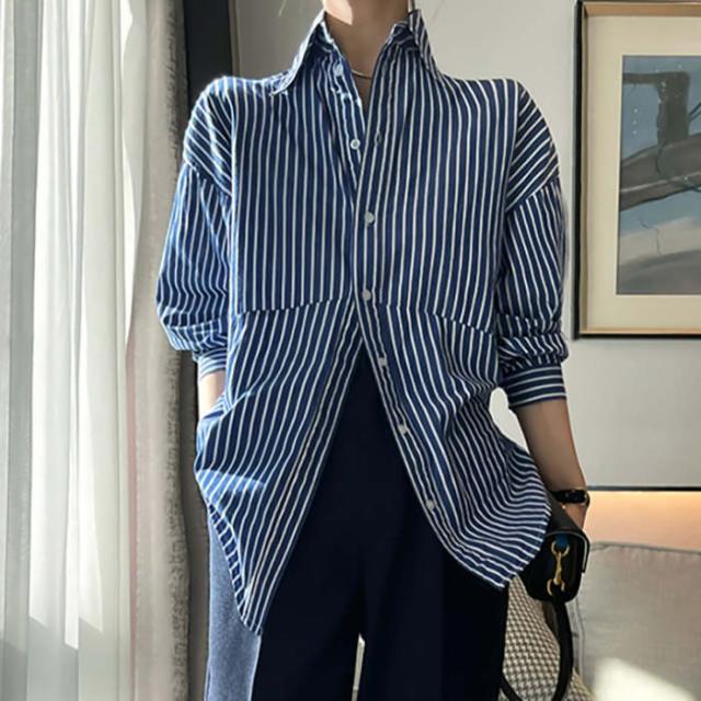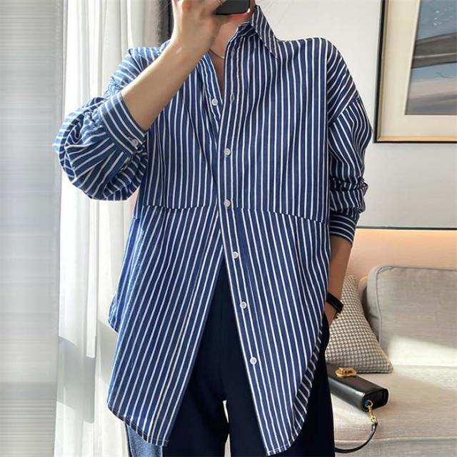 ストライプシャツ レディース トップス 春 夏 秋 シャツ 長袖 きれいめ シンプル カジュアル ストライプトップス 前開き ゆったり 羽織り 体型カバー 通勤 ブラウス 会社 フォーマル トレ OL