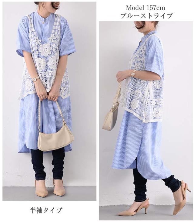シャツワンピース ロング 半袖 ワンピース 春 夏 ストライプ 白 ロングシャツ シャツワンピ 大きいサイズ レディース チュニックワンピース 黒 長袖 白シャツ UVカット 綿 体型カバ 紫外線対策