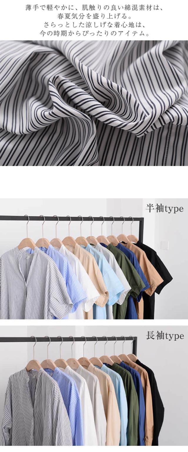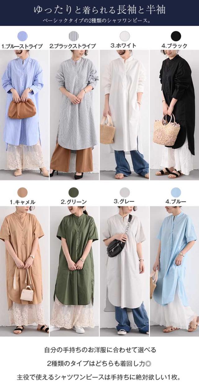 シャツワンピース ロング 半袖 ワンピ 黒 白 グレー ベージュ キャメル 水色 グリーン 紺色 (New)ブラック ストライプ (New)ブルー ストライプ 半袖 長袖