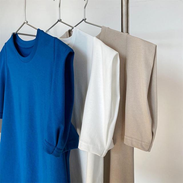 肌に優しく柔らかで、サラッとしたコットン素材の生地感が心地良い一着。