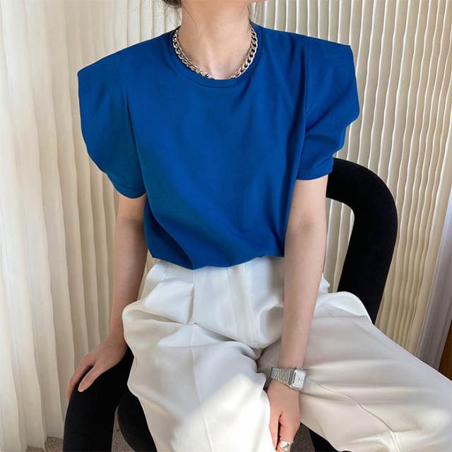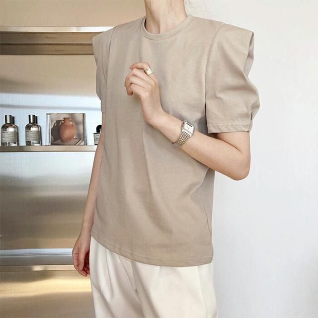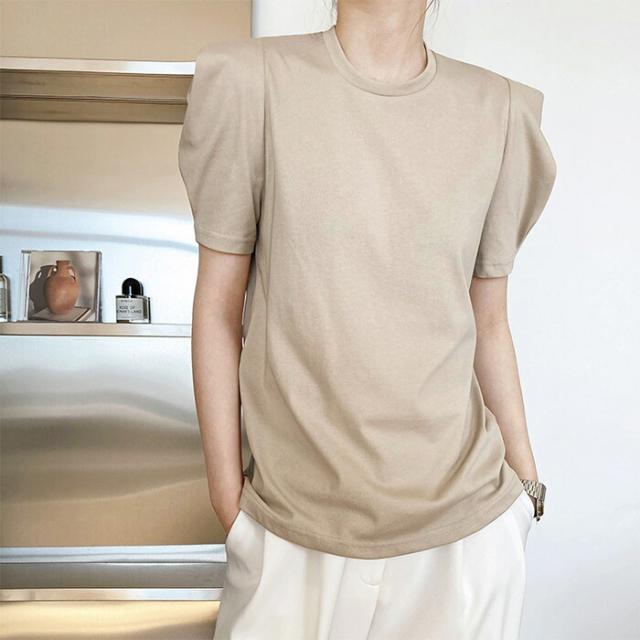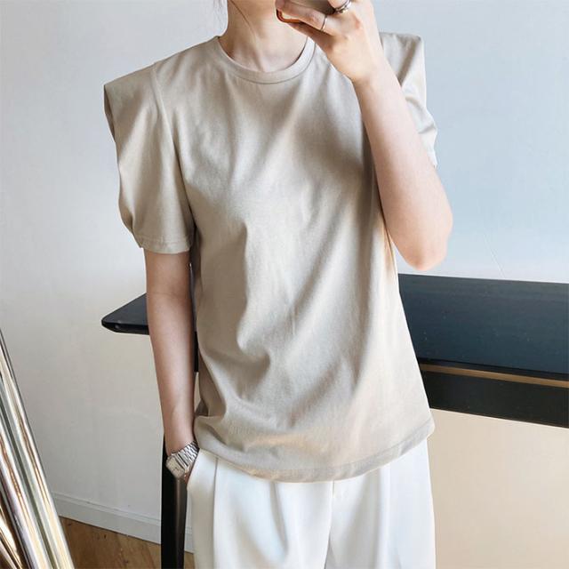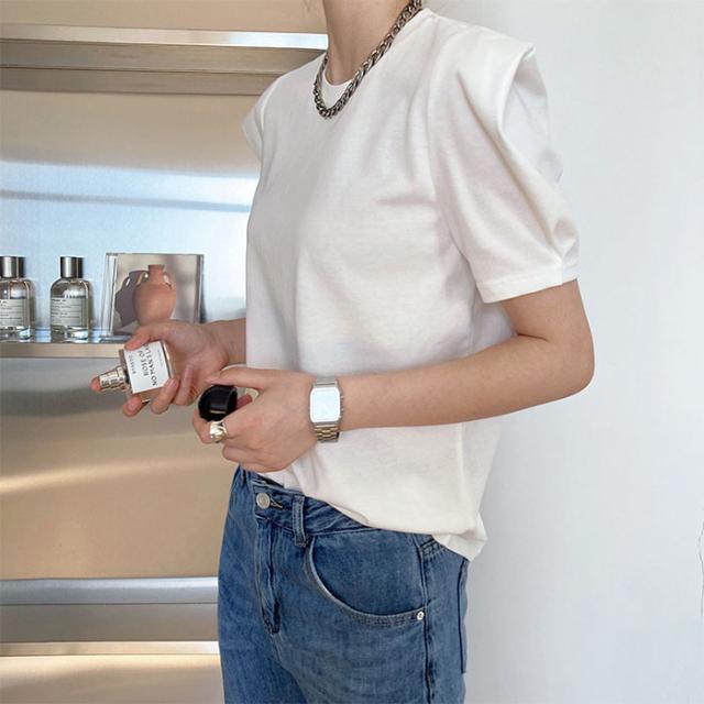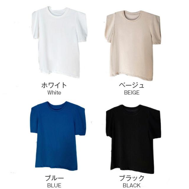 Tシャツ レディース tシャツ パフス トップス Tシャツ カットソー 通販 ホワイト ベージュ ブルー ブラック M L