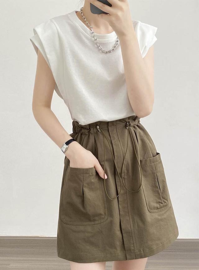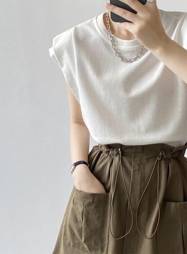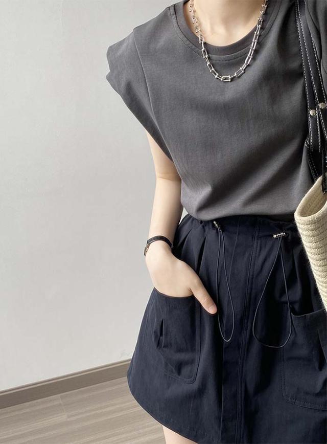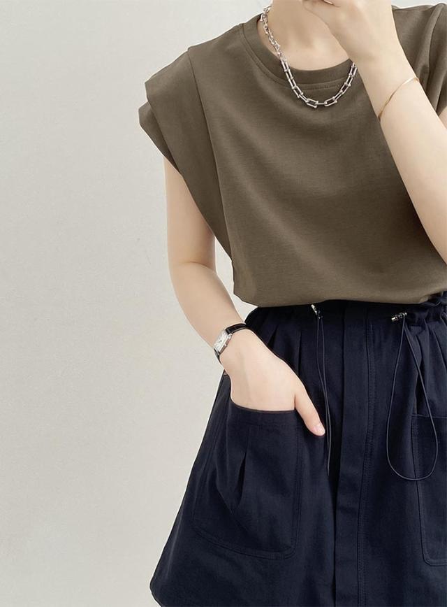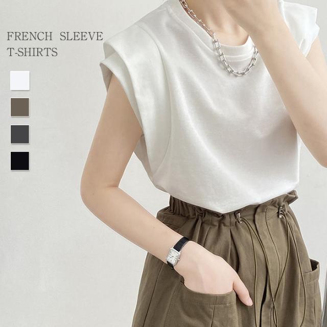 tシャツ レディース フレンチスリーブ カットソー きれいめ Tシャツ 無地 クルーネック トップス 夏 カジュアル 二の腕カバー ナンニング ノースリーブ シンプル コットン 綿 オフィ ベーシック