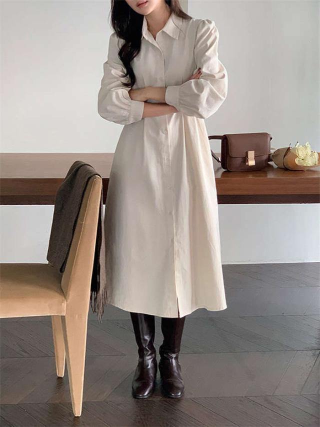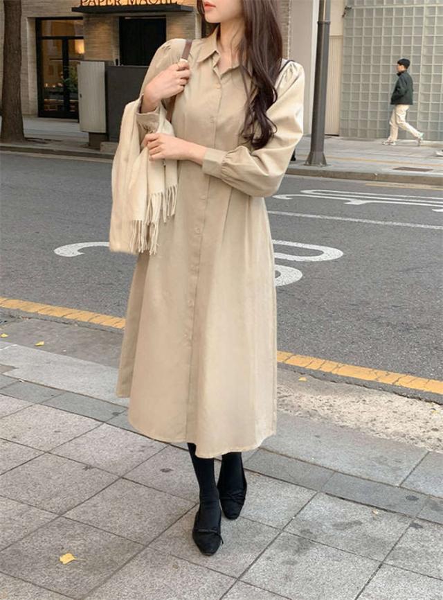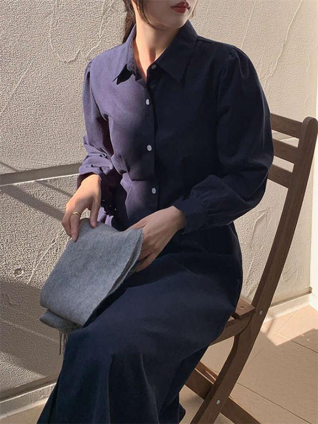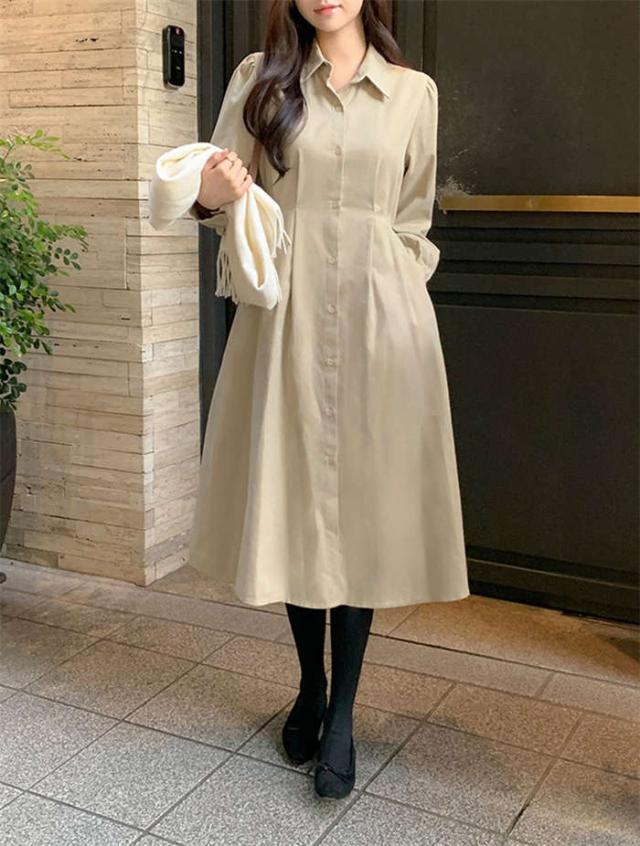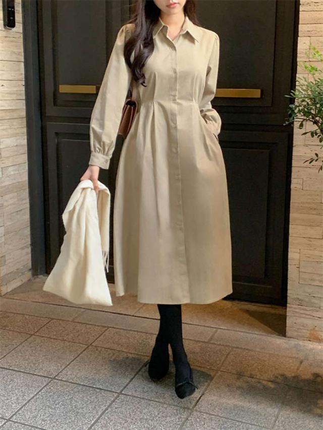 シャツワンピース レディース ワンピー レディースファッション 続々登場 ベージュ キャメル ネイビー M L