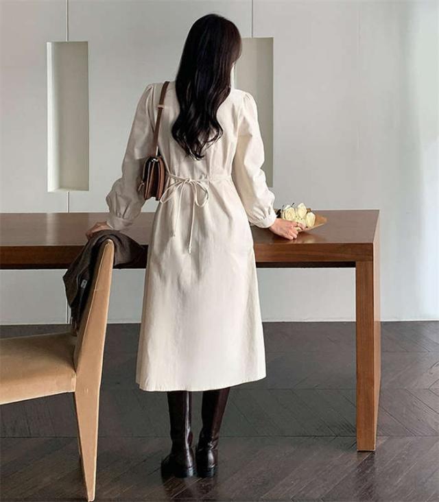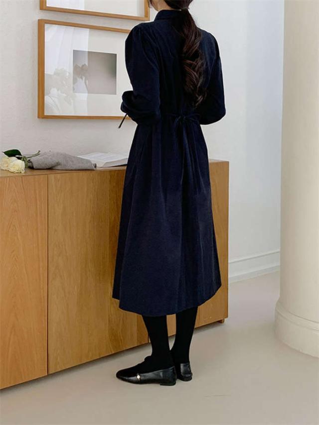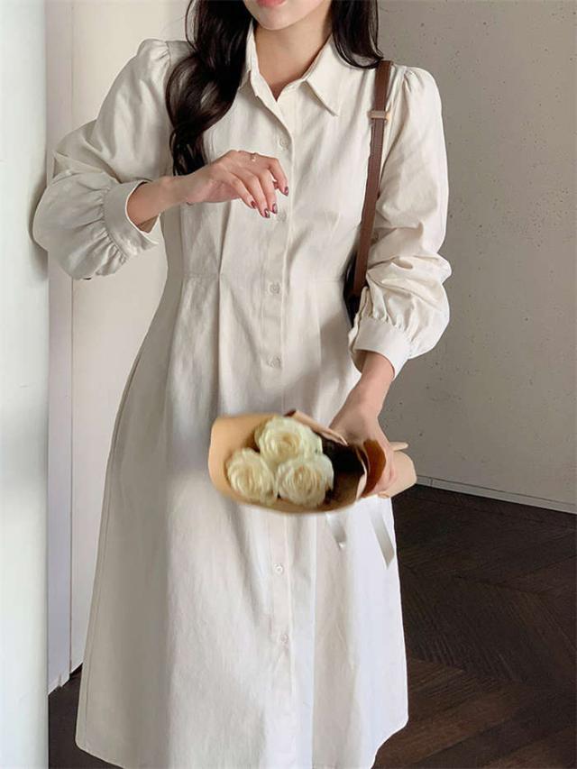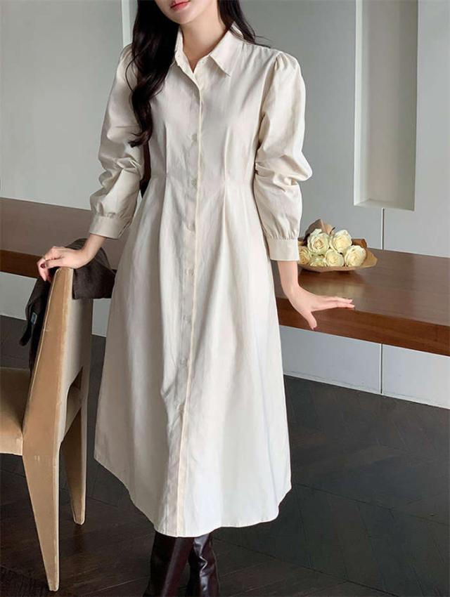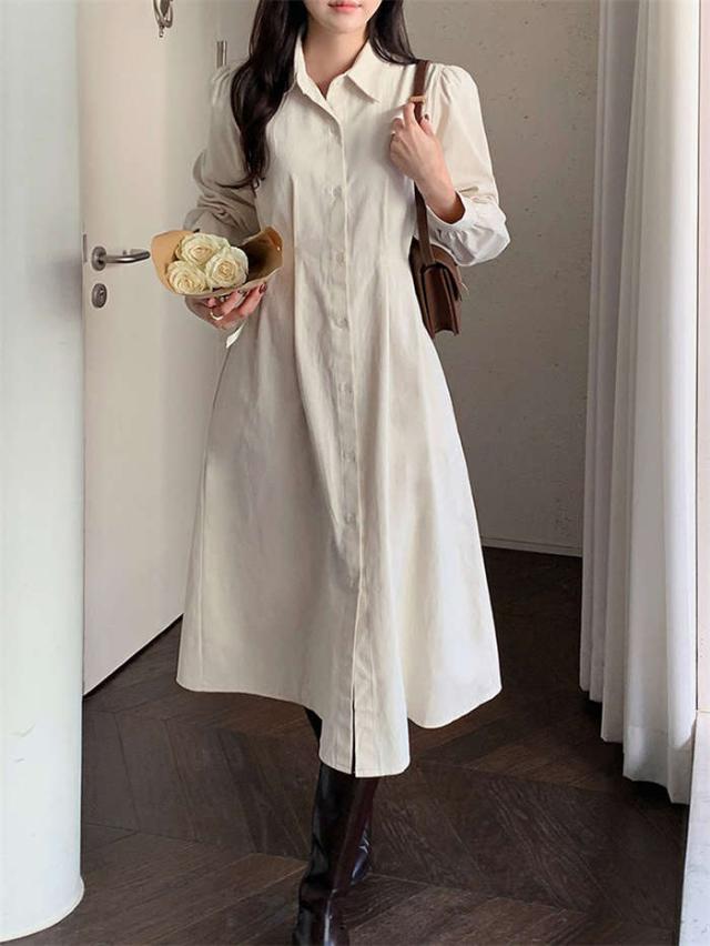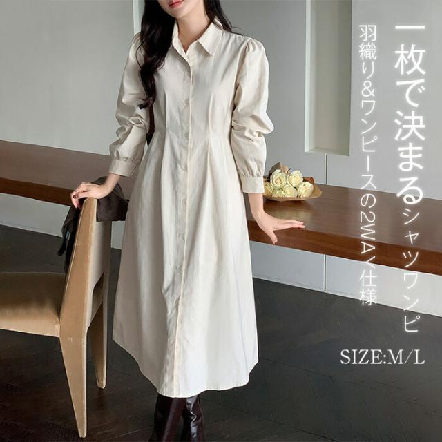 シャツワンピース レディース ワンピース 春 秋 冬 ロングシャツ 長袖 フレアワンピース ミモレ丈 ゆったり 無地 羽織り リボン ふんわり シンプル フェミニン エレガント キレイめ カジュアル