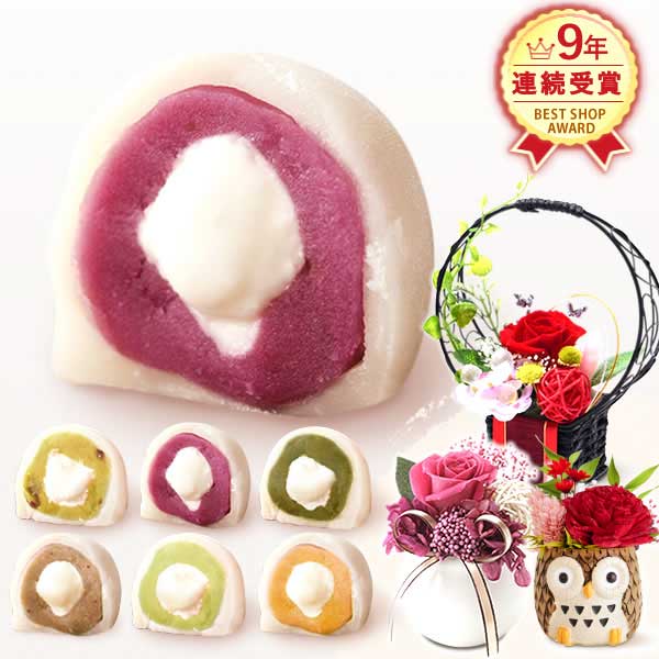 ギフト 花とセット プリザーブドフラワー プレゼント ふわとろ大福 詰め合わせ アソート 冷凍 個包装 クリーム大福 プリザーブドフラワー お取り寄せ 送料無料 食べ比べ フルーツ スイーツ 和菓子 おいもや