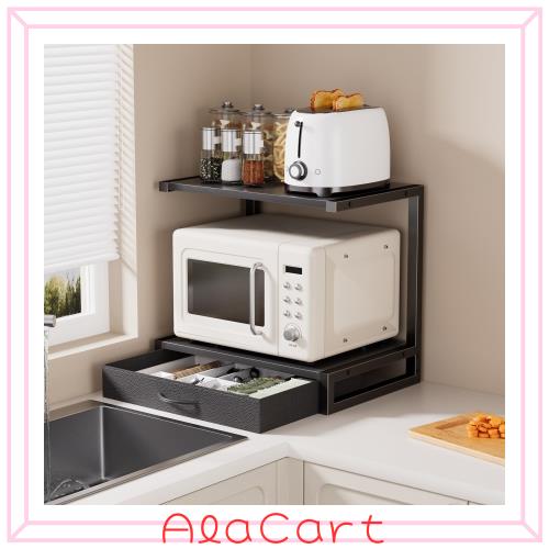 レンジラック 卓上 引き出し付き 電子レンジラック 冷蔵庫上収納 キッチンラック 幅44cm×奥行30cm×高さ40cm 省スペース 耐荷重40kg イ