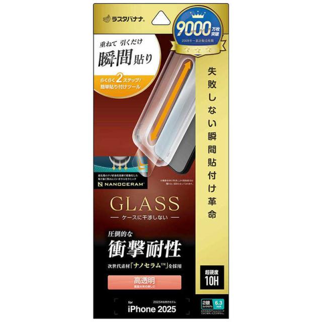 ラスタバナナ iPhone 17 ガラスフィルム 瞬間貼付け革命 平面保護 衝撃耐性 ナノセラム 高光沢 高透明 MTK4907IP5A