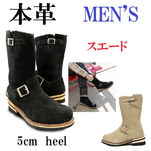 本革 スエード 本格エンジニアブーツ レザーブーツ メンズ 小さいサイズ 大きいサイズ グッドイヤーウェルト製法 スエード素材 スチール(鉄板)入りトゥ タウン履き ツーリング 安全靴 カジュアルブーツ おしゃれ