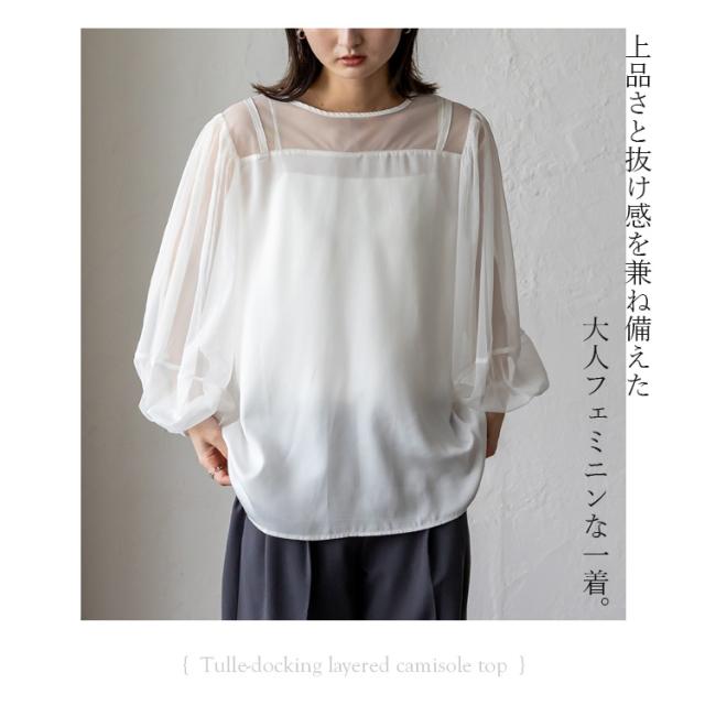 キャミソールを重ね着しているようなデザインで、1枚で奥行きのあるスタイリングが完成。