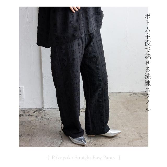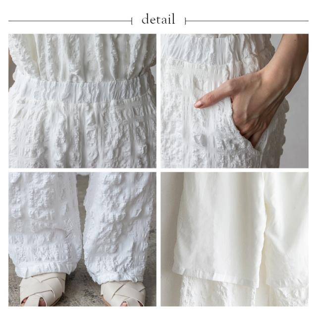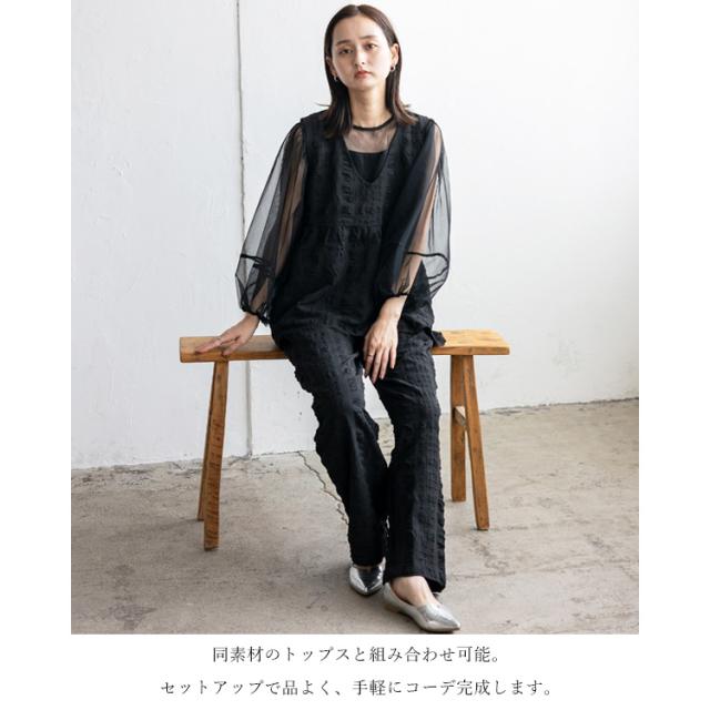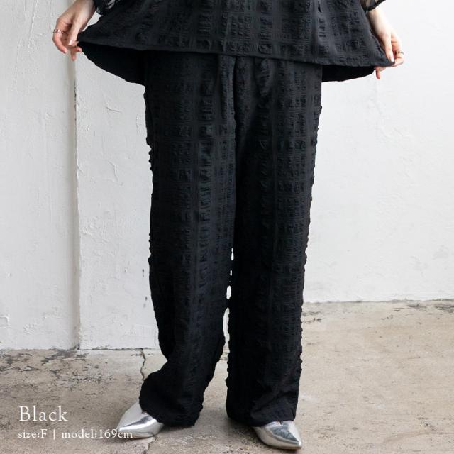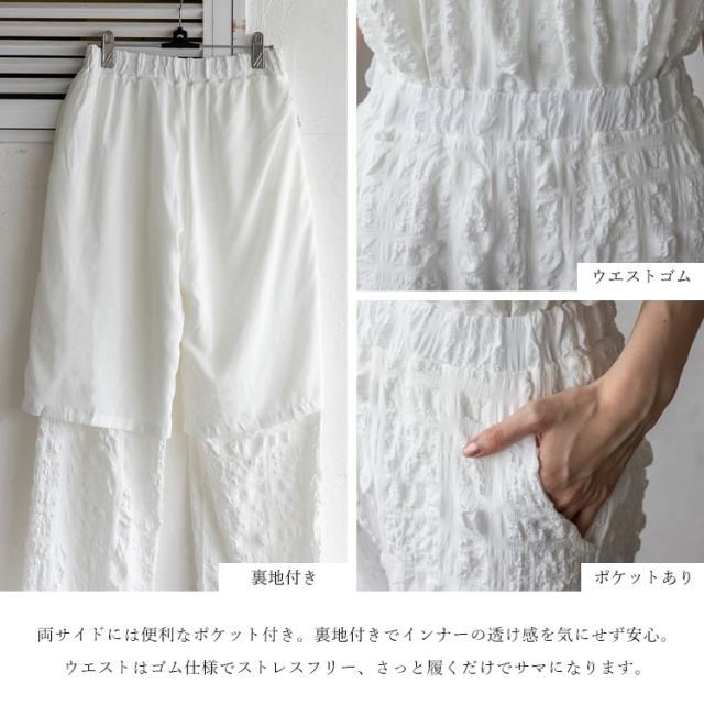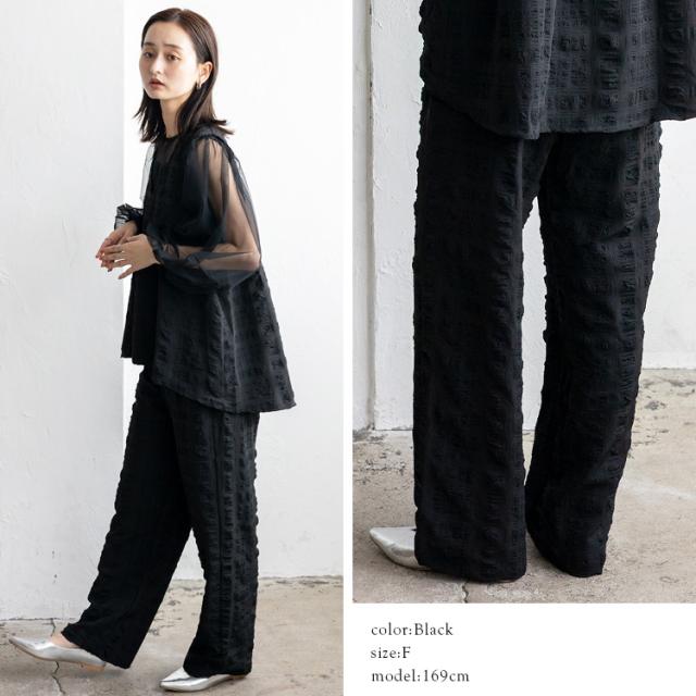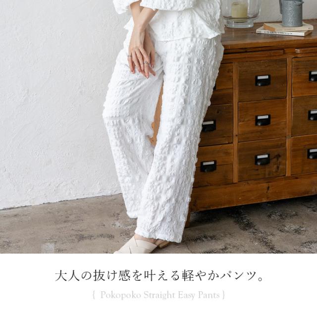 【セットアップ可】パンツ レディース 裏地あり 凹凸 立体的 ストレートパンツ ポケット 上品 きれいめ 大人 ウエストゴム シワになりにくい 高身長 ロングパンツ ボトムス 体型カバー 黒 白 ホワイト 【メール便】 nrc-0016