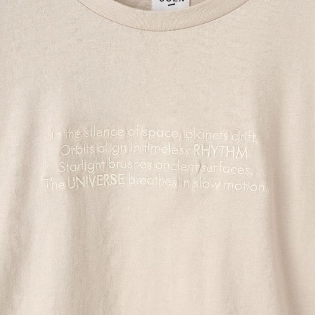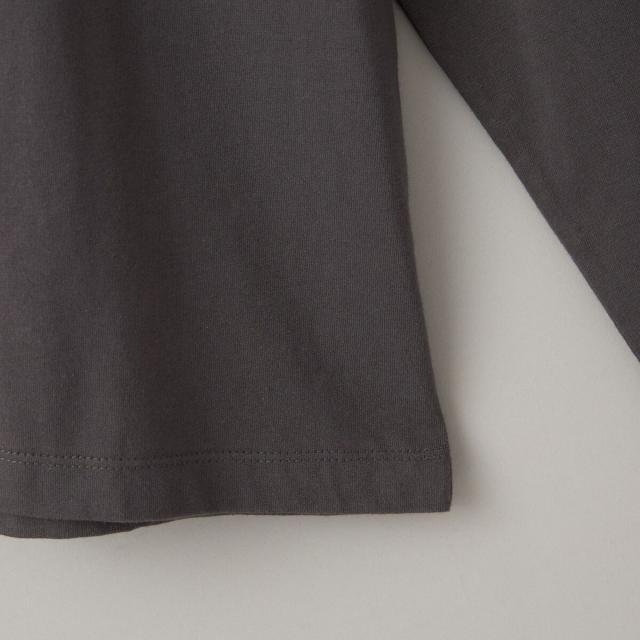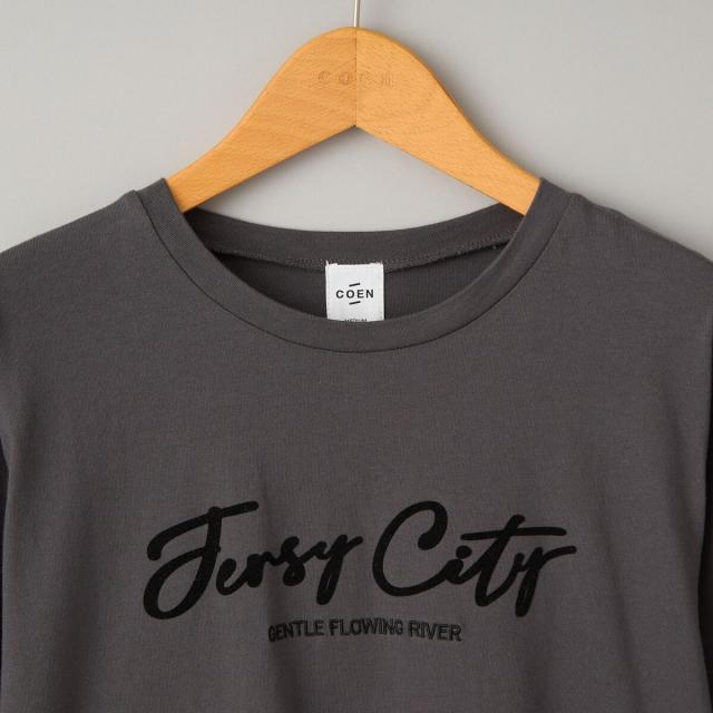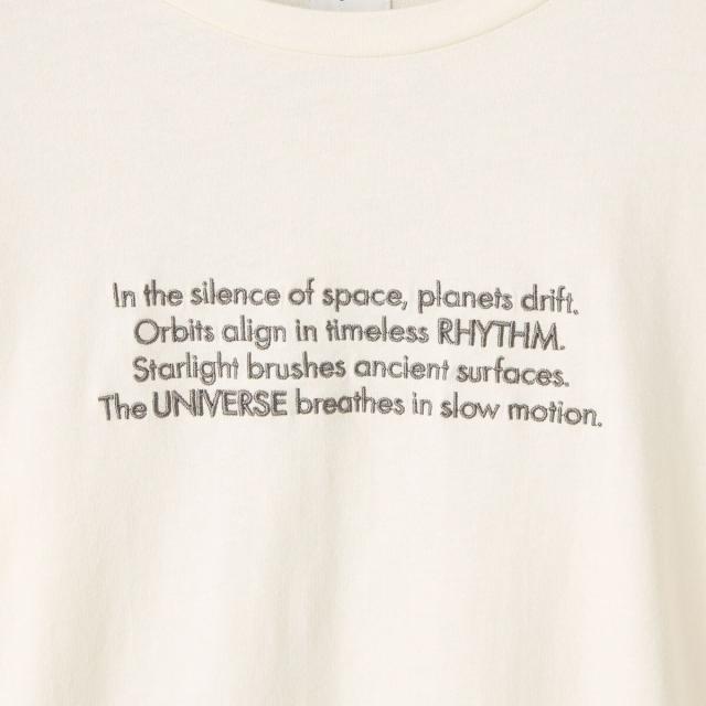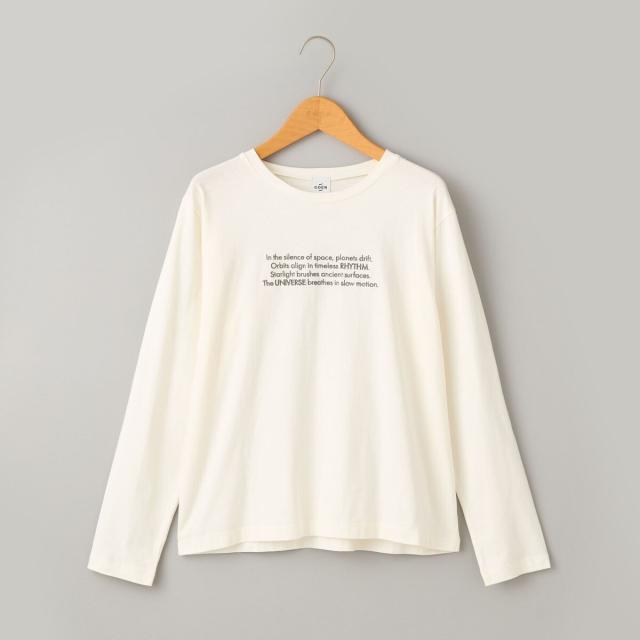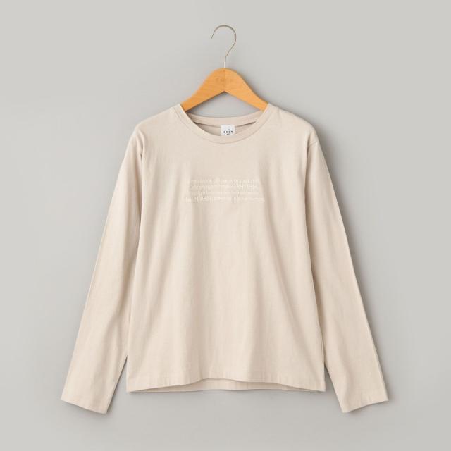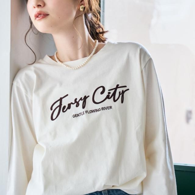 コンパクトなシルエットに、秋らしい刺繍とフロッキープリントを施したベーシックなロンT。