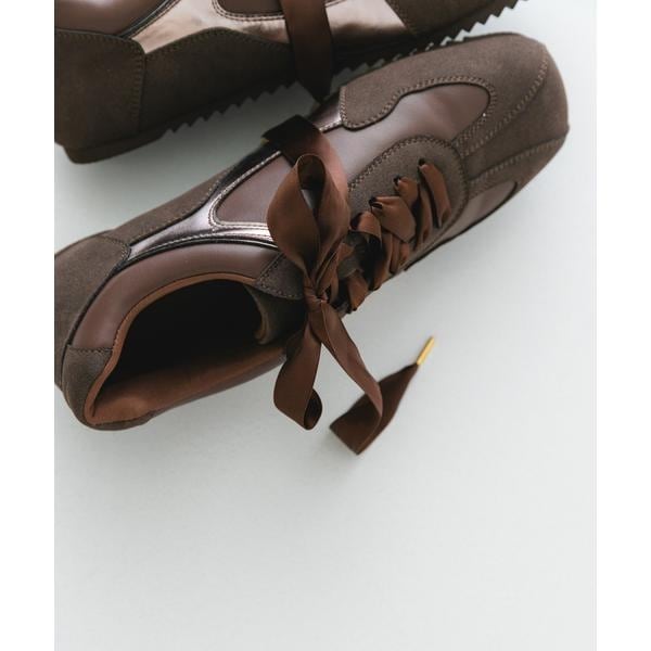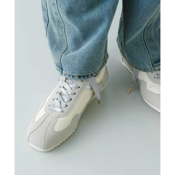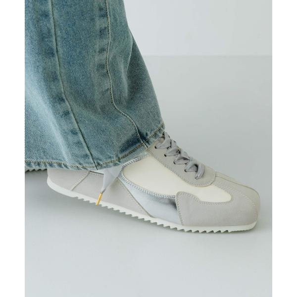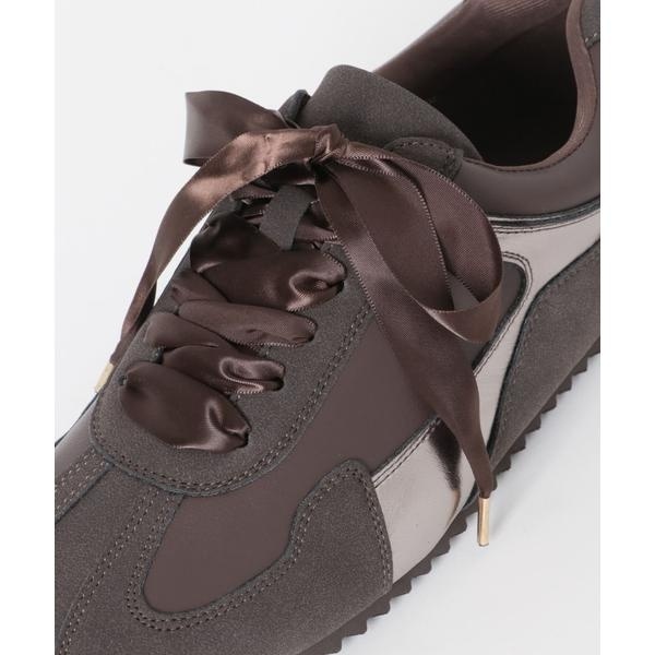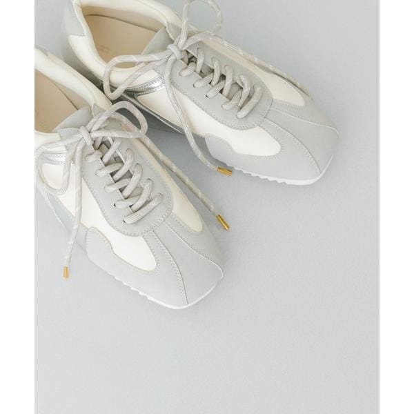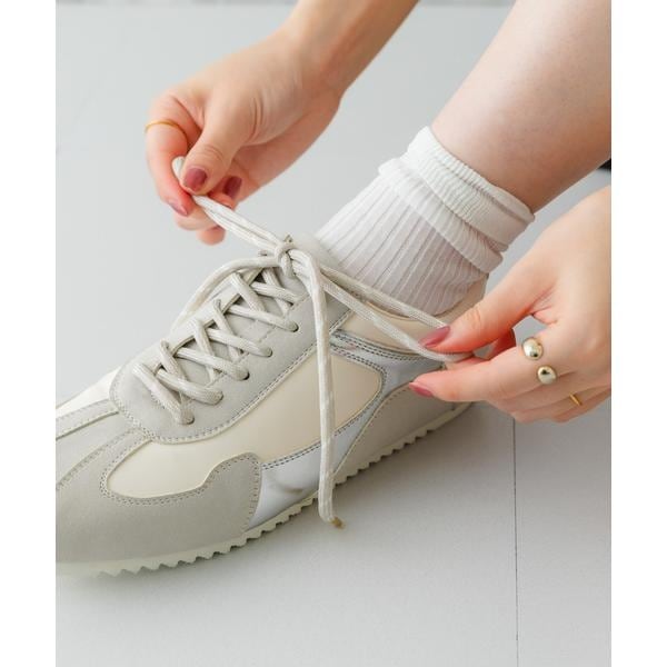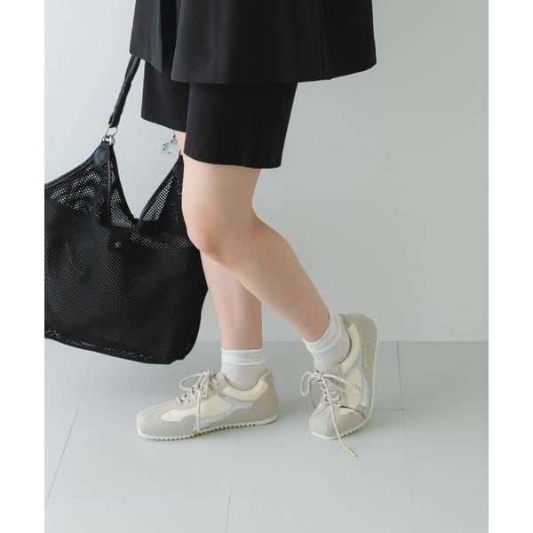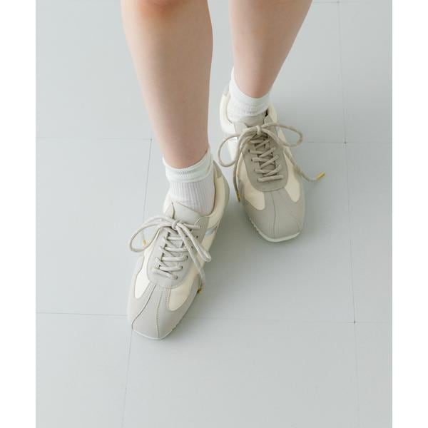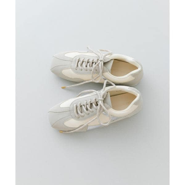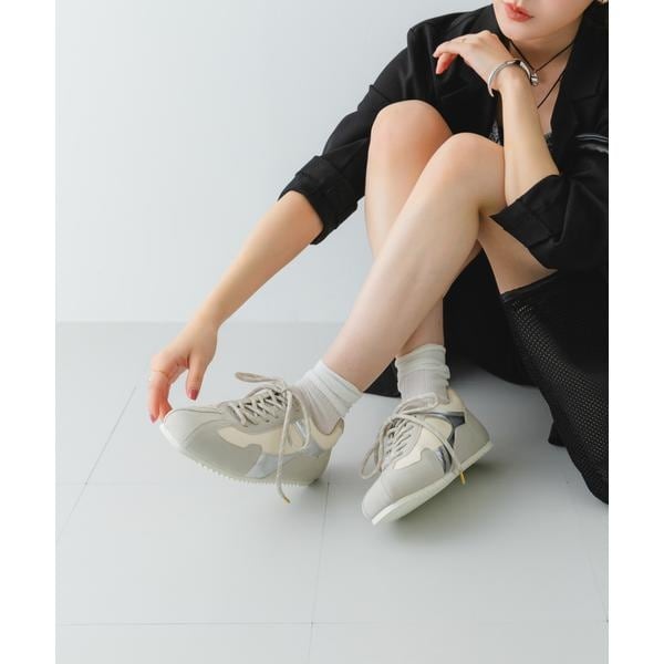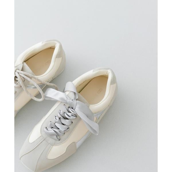 リボンタイプと通常の紐タイプのシューレースが2本付属しており、気分やコーディネートに合わせて使い分け可能。丸みのあるフォルムで女性らしく仕上げ、ソールは薄めでスニーカーながらもきれいめ見えするデザイン。2トーンカラー仕様でスポーティな印象を持たせつつ、大人かわいいピンク・ブラウン・グレーの3色展開。履き心地にもこだわり、デイリー使いに最適です。