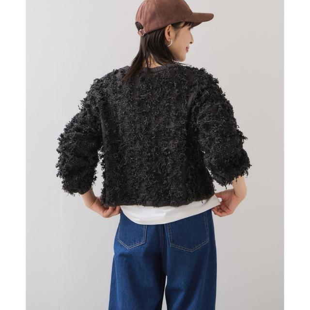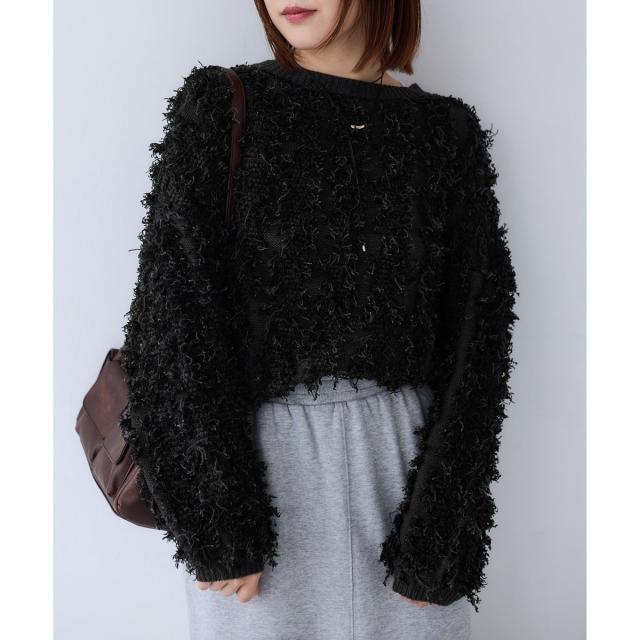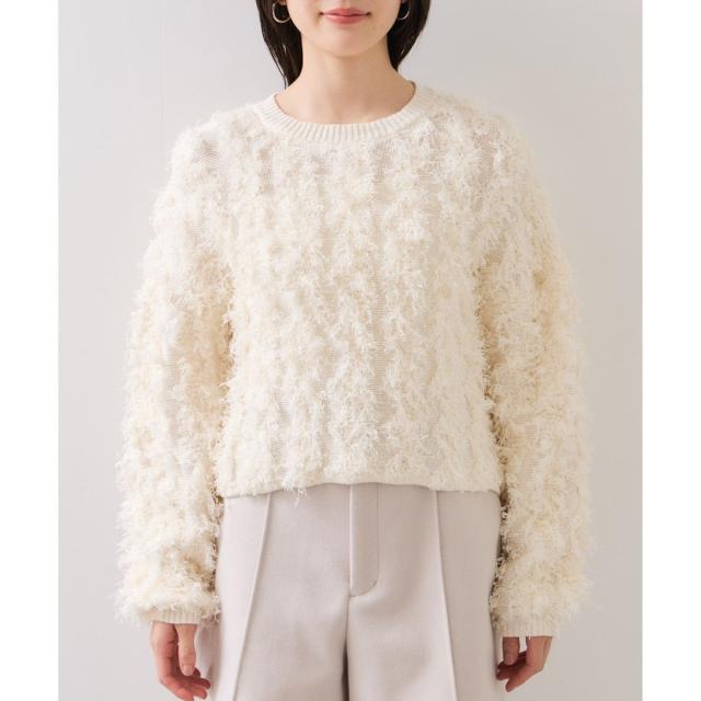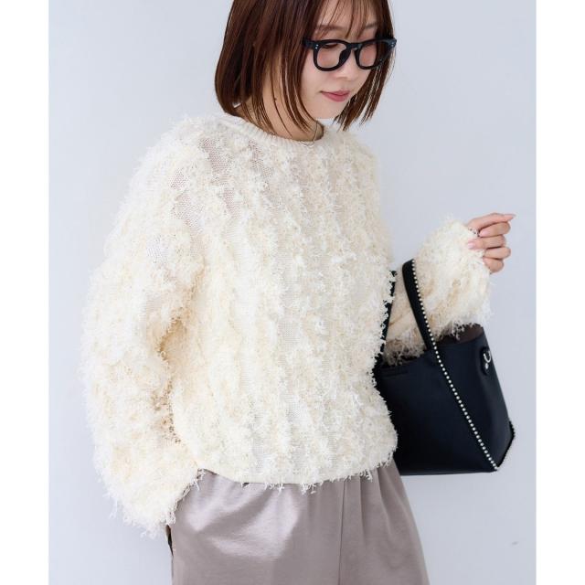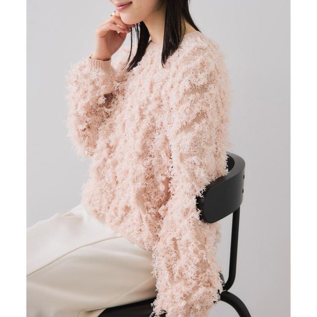 リボンヤーンフリンジニットプルオーバー