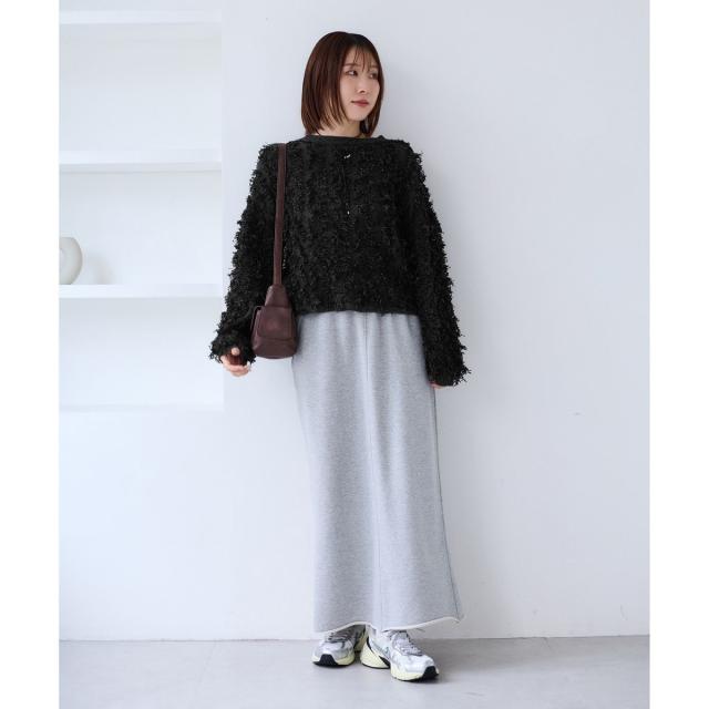 フリンジでトレンド感を演出。着るだけでインせずアウトスタイリングが決まる着丈感です。