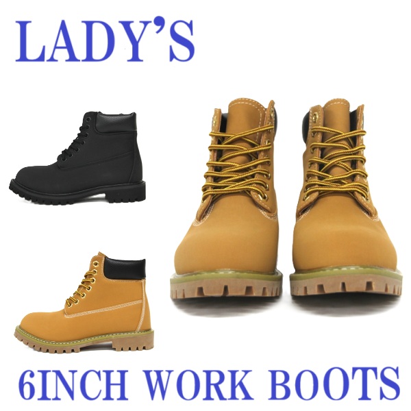 ベーシック 6インチ レディース ワークブーツ ブーツ 定番 ブラック イエロー アメカジ ショート カジュアルブーツ 軽量 履きやすい 歩きやすい おしゃれ 合成皮革 通気性