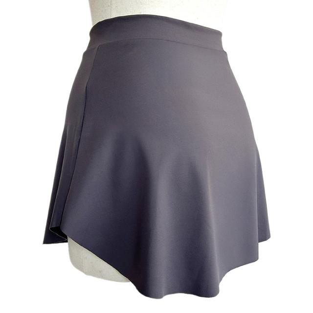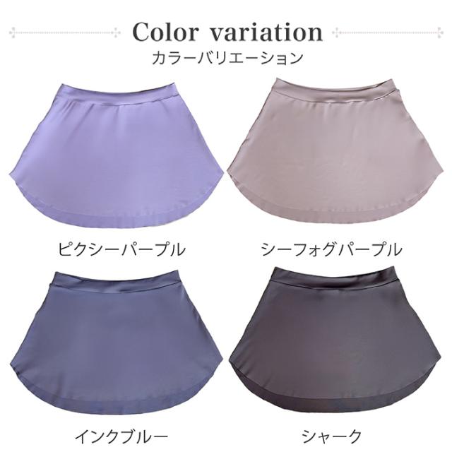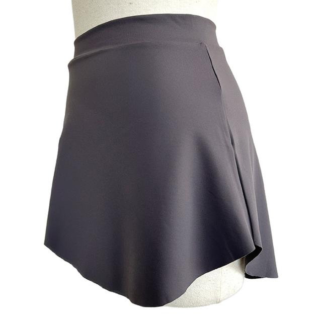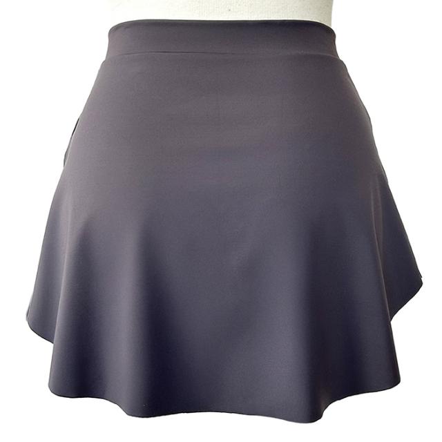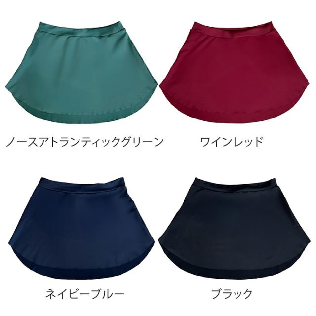 透けない 着脱ラクラクの、シルエットが綺麗なプルオンスカートです。レオタード生地のようになめらか ギャザー無しでシンプルながら、脚長効果も♪