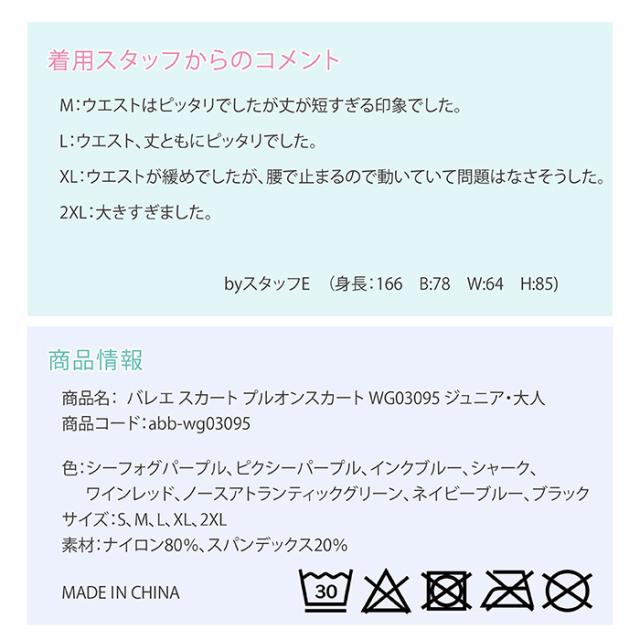 バレエ スカート プルオンスカート WG03095 ジュニア 大人 バレエウエア おしゃれ ストレッチ 伸縮 レッスン 練習 着 おとな ブラック 黒 チャコール 灰色 グレー くすみ パープル 紫 グリーン ネイビー 紺 青 150 155 160 165 170 175
