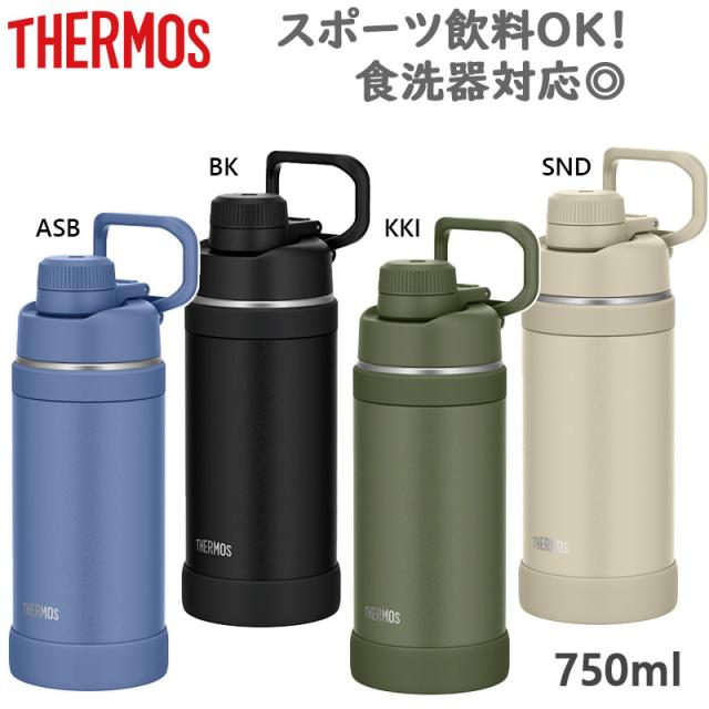 750ml サーモス メンズ レディース 真空断熱スポーツボトル アクセサリー 水筒 スポーツ 保冷専用 スポーツ飲料 食洗器対応 キャリーループ ブラック 黒 ブルー 青 カーキ THERMOS FJU750