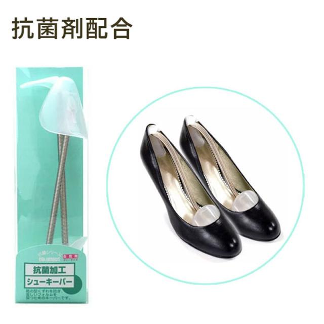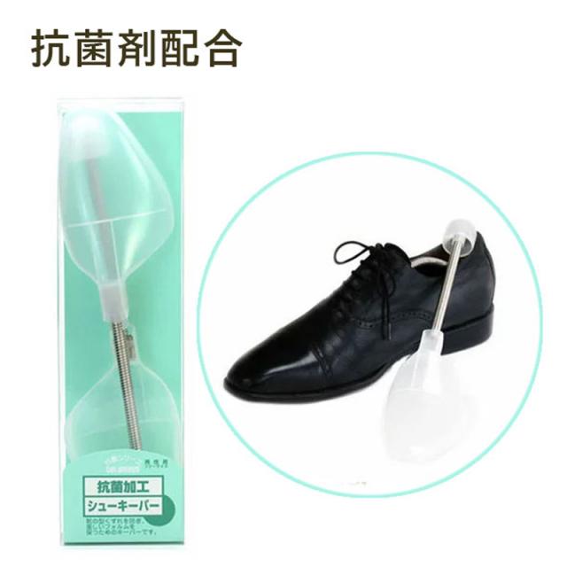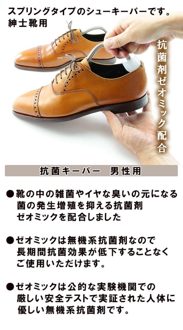 靴の中の雑菌やイヤな臭いの元になる菌の発生、増殖を抑える抗菌剤ゼオミック配合の、スプリングタイプのシューキーパーです。