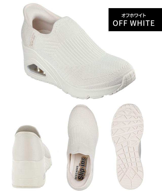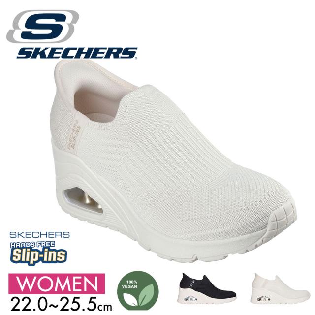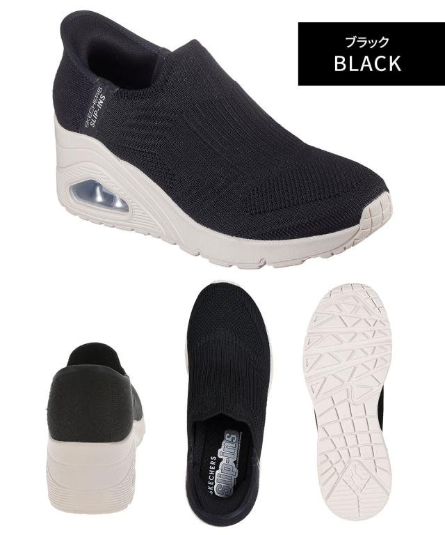 スケッチャーズ ハンズフリー スリップインズ スリッポン レディース ローカット ウェッジソール 厚底 靴 ニットシューズ 女性用 スニーカー 黒 ブラック 白 ホワイト Skechers UNO WEDGE-KICKIN' KNIT 177523
