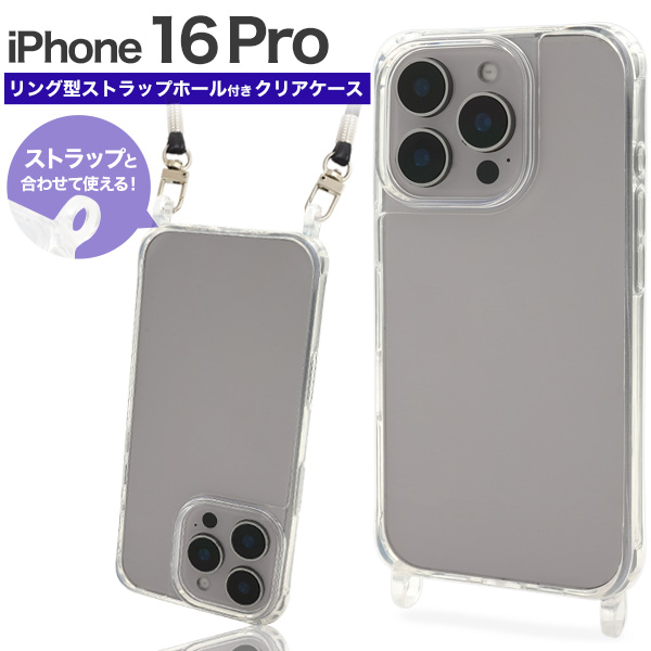 スマホケース iPhone16Pro リング型 ストラップホール付き クリアケース アイフォン16プロ 背面 保護 カバー 透明 クリア 光沢 無地 シンプル アイホン iPhone 16Pro アイフォン16Pro ショルダー ストラップ 肩掛け スマホショルダー 送料無料