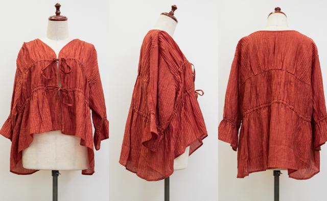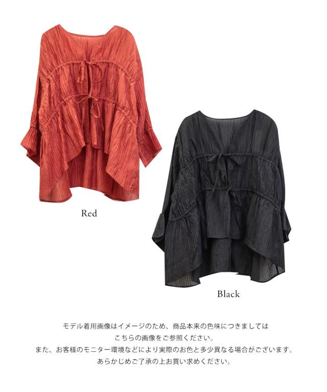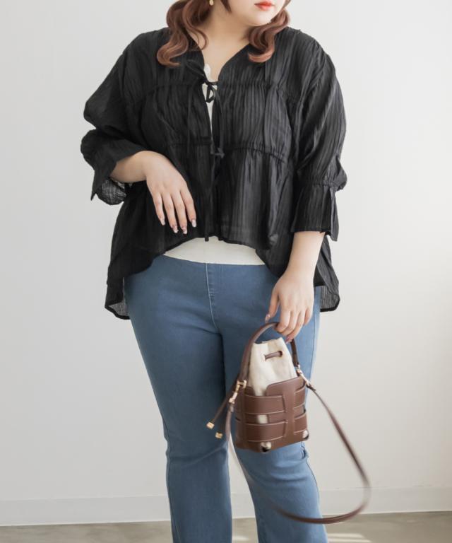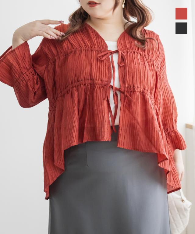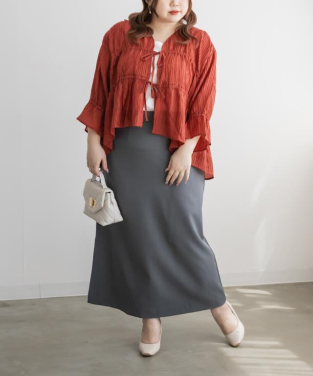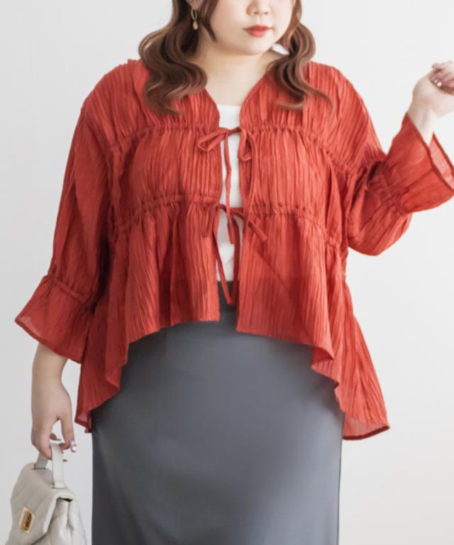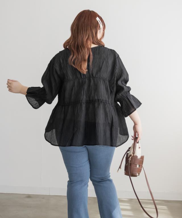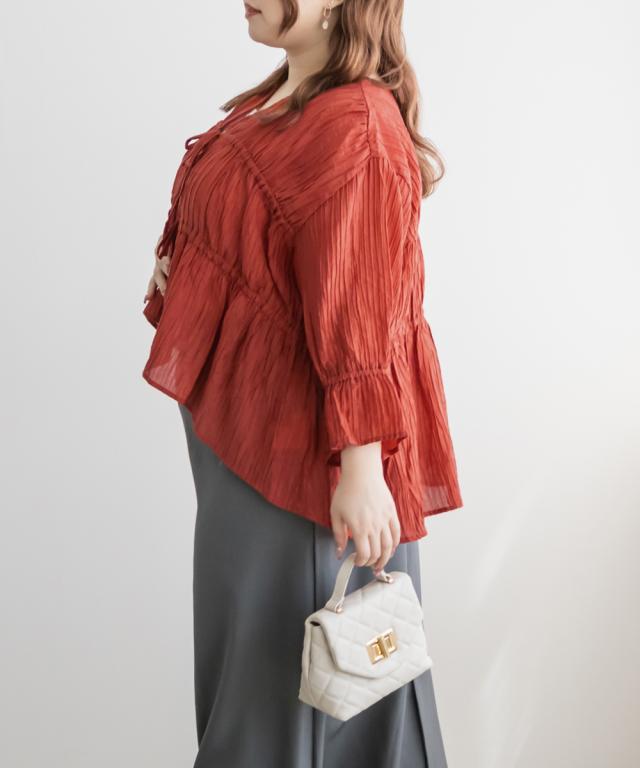 | 3Lサイズを着用しました。着用感は程よくゆとりがあってちょうどいいです。ギャザーが寄ったデザインで、立体的で華やかな印象になります。さらりとした生地感で着心地が軽く、季節の変わり目にもぴったり!袖丈は手首肘までしっかり隠れる長さで安心感があり、パンツにもスカートにも合わせやすい万能アイテムです。きれいめにもカジュアルにも着回しできるのが嬉しいポイント◎ |
