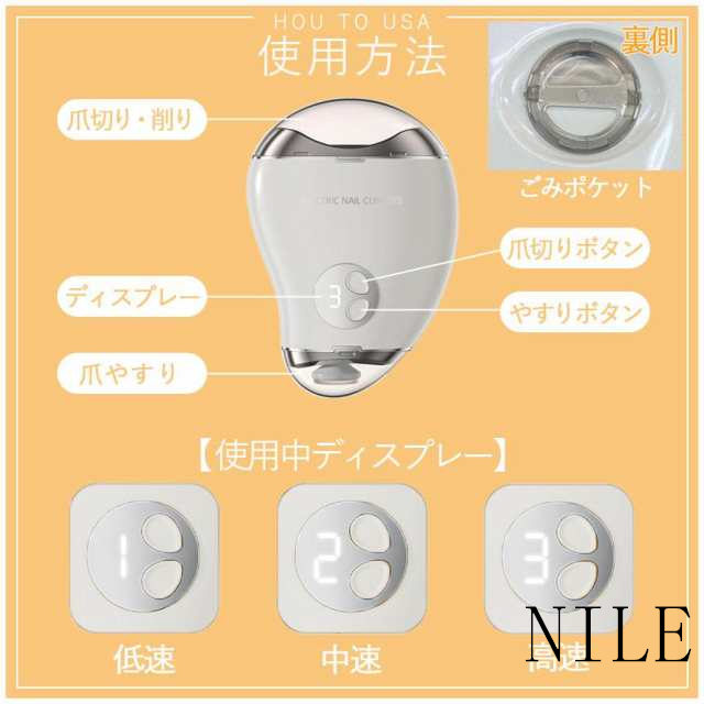 電動爪切り 足 自動 爪削り 爪磨き やすり Type-C 充電 3段階スピード 研磨機能付き LED ライト 爪研ぎ 赤ちゃん 子供 高齢者 電動ネイルクリッパー 旅行用 コンパクト