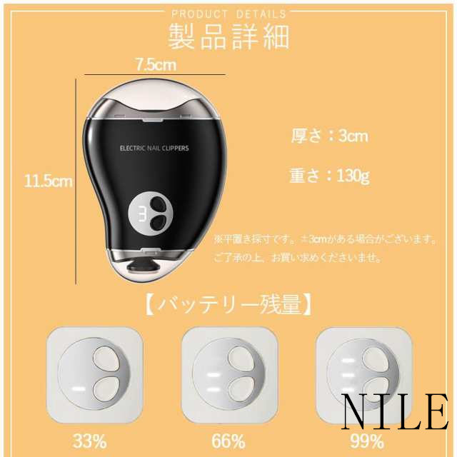 伝統的なネイルカッターは、カットする際に深すぎたり短すぎたりすることがあり、特に子供のネイルをカットするときには、怪我をするリスクがあります。この電動ネイルカッターは特殊なデザインにより、ネイルを簡単にカットできるだけでなく、これらの問題を回避し、カットプロセスをより安心させます。