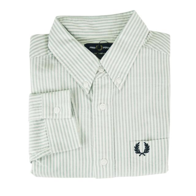 セールAW FRED PERRY フレッドペリー オックスフォードシャツ メンズ コットン 綿100% M1736 / OXFORD STRIPE SHIRT グリーン×ホワイト