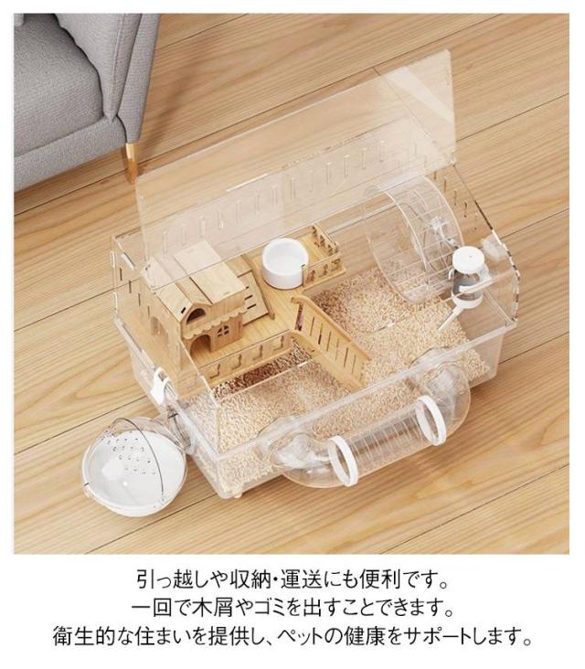ゴールデンハムスター 大きい アクリル製 多頭飼い対応 大型 45×30×33cm ハムスターケージ 広い空間 通気性良好 脱走防止 ハムスターケージ 広々スペース 静音設計 お手入れ簡単 小動物 ケージ 組み立て簡単 観察しやすい 給水ボトル 回し車 お風呂 DIY