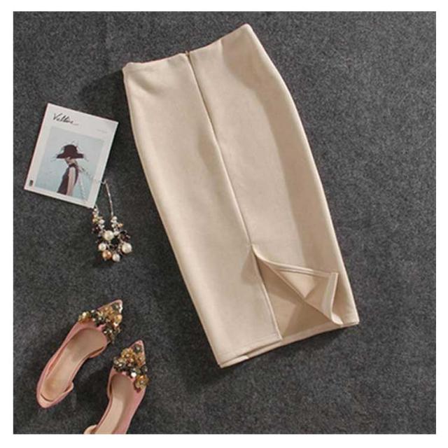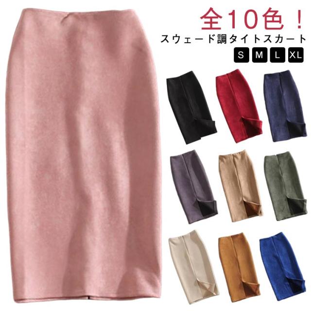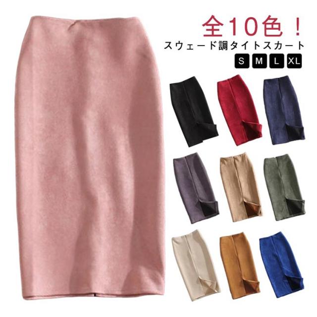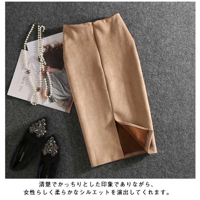 スウェード調 タイトスカート レザースカート ペンシルスカート ミディアムスカート バックスリット フェイクレザー エコレザー ハイウエスト ひざ丈 膝丈 スカート オフィス OL 着?せ 20代 30代 40代 S M L XL
