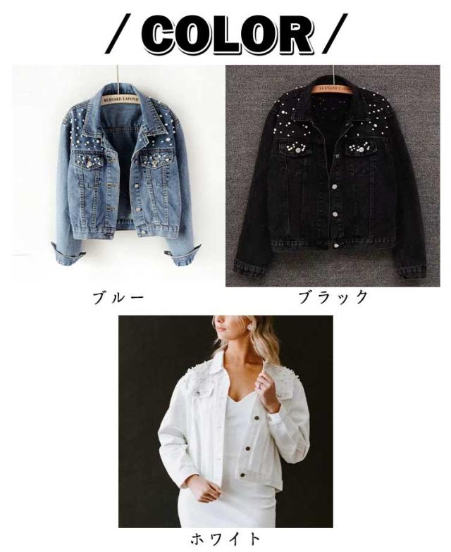 デニムジャケット パール付き きれいめ レディース ジャケット デニム ショート丈 コンパクト ジージャン Gジャン 黒 白 ブルー 30代 40代 50代 デニムショートジャケット 大人 可愛い トレンド 春 夏 秋 アウター ジャケット 羽織り 春秋 通勤 通学 お出かけ 【送無】