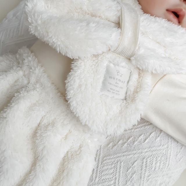 コーディネートの主役になる、インパクト抜群のデザインモコモコの生地で、ベビーの頭をすっぽり包むフード付きマフラーです。頭から首元までしっかり防寒できるので、寒い日のお出かけにおすすめ。着ぐるみのようなアニマルスタイルをより手軽に楽しめます。