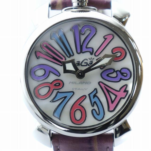 【中古】ガガミラノ GaGa MILANO マヌアーレ40腕時計 ウォッチ クォーツ レザー 白文字盤 ロゴ シルバー色 28471