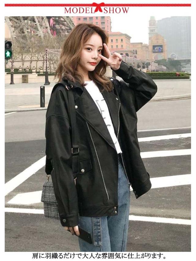 ブルゾン 春秋 長袖 レディース アウター レザージャケット 羽織り 大きいサイズ ジップアップ コーデ フェイクレザー レザージャケット 合皮 シングル バイカージャケット 防寒着 ライダースジャケット おしゃれ