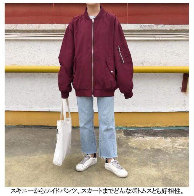 | S-XL! 男女兼用! サッと羽織れる、レディース軽量MA-1ブルゾンです。 コンパクトなシルエットで、袖口、裾にリブが付いています。 洗いをかけた程よい加工感がこなれた印象に見せてくれそう。 カジュアルな中にレディライクな要素もプラスされたブルゾン。 スキニーからワイドパンツ、スカートまでどんなボトムスとも好相性。 | |