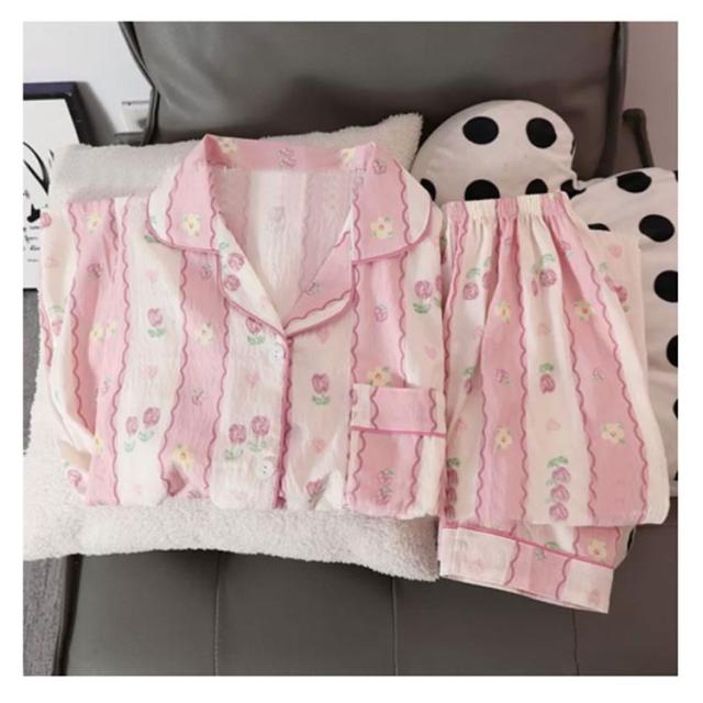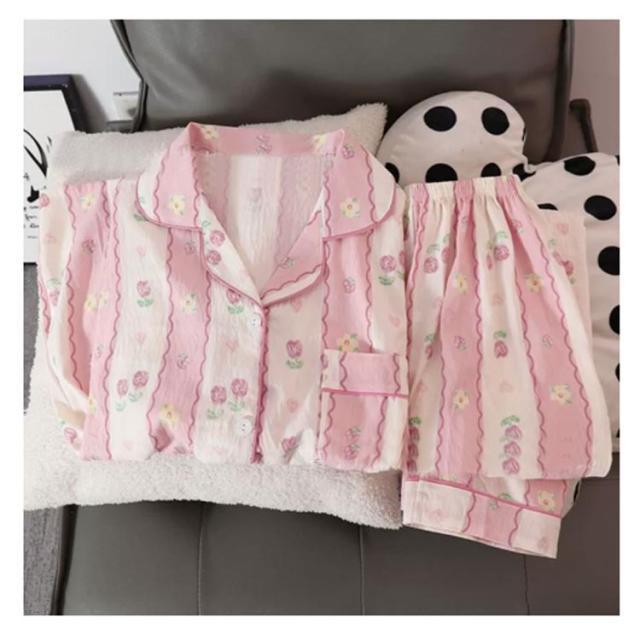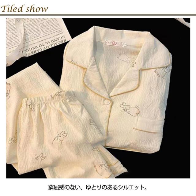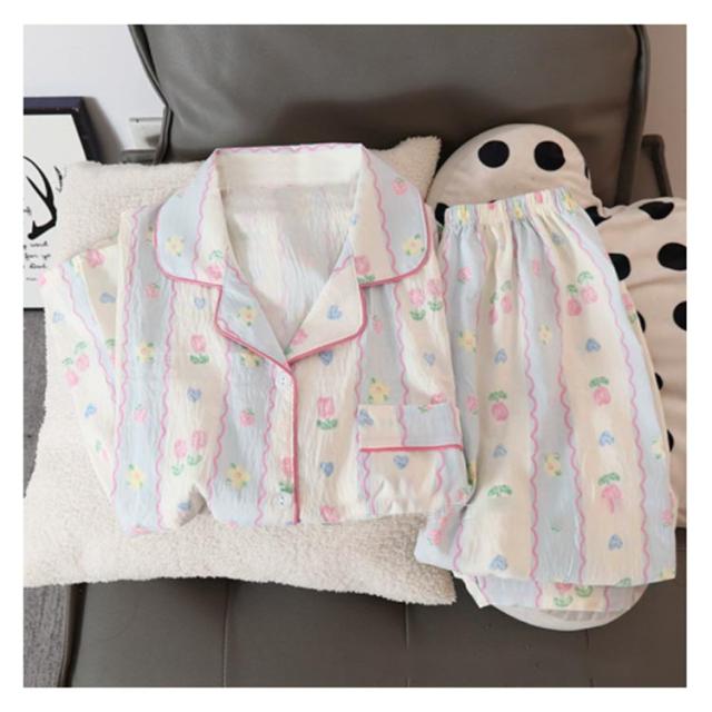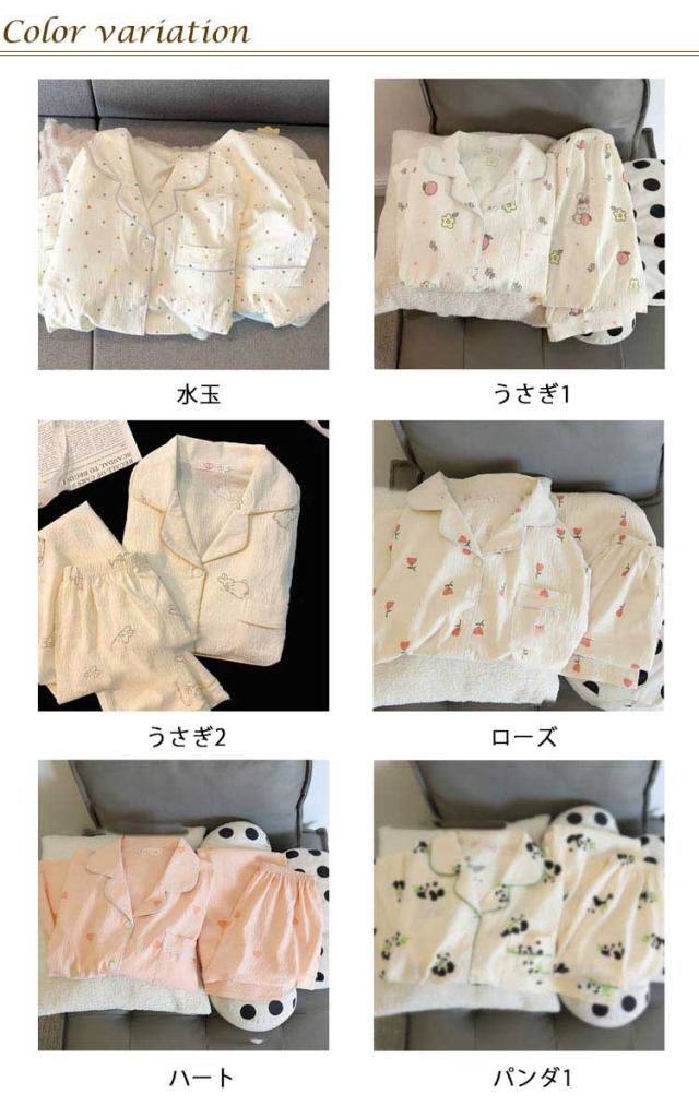 | M〜XL パジャマ 豊富な柄展開がかわいい前開きパジャマ。 窮屈感のない、ゆとりのあるシルエット。 ウエストは総ゴム仕様でらくちん。 部屋干しても乾きがよい。 | |