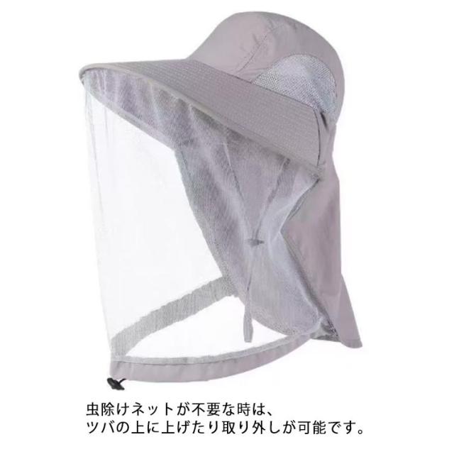 釣り 日よけ 虫除け ネット付き 帽子 ハット ガーデニング 日除け 紫外線対策 メッシュ ネット ガーデニングハット つば広 収納サック付き 虫除け 草刈り 防虫 園芸 農作業 アウトドア 園芸用品 養蜂防護帽 登山 メンズ