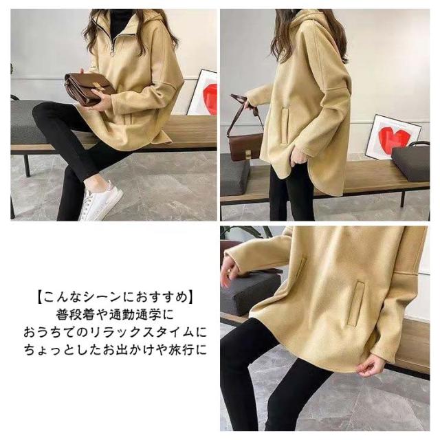 | 秋冬の主役!「可愛い」と「楽ちん」を両立できる万能パーカー 【ラクなのに美シルエット】 ドルマンスリーブで腕まわりもゆったり ラウンド裾で自然にスタイルアップ 大きめシルエットで体型カバーにも◎ 【機能性もばっちり】 首元あったかハイネック×ハーフジップデザイン サイドポケット付きで便利 柔らか素材で着心地快適、ルームウェアにもおすすめ 【着回し力抜群の無地デザイン】 シンプルな無地だから、デニムやスカートなどどんなボトムスとも相性抜群。 韓国風コーデやカジュアルスタイルに取り入れやすい1枚です。 【こんなシーンにおすすめ】 普段着や通勤通学に おうちでのリラックスタイムに ちょっとしたお出かけや旅行に | |