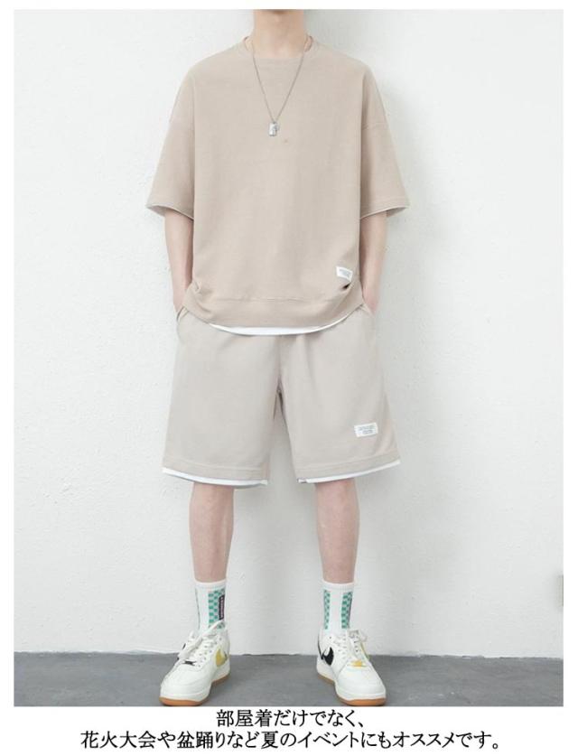| 上下別に使って、カジュアルやストリートなど様々なスタイルに使える1着。 サラリとした着心地の半袖トップス&ハーフパンツの2点セットアップ。 通気性に優れ、汗をかいても肌に張り付かず着心地バツグンです。 夏のルームウェア、パジャマなどにもお使いいただけます。 部屋着だけでなく、花火大会や盆踊りなど夏のイベントにもオススメです。 | |
