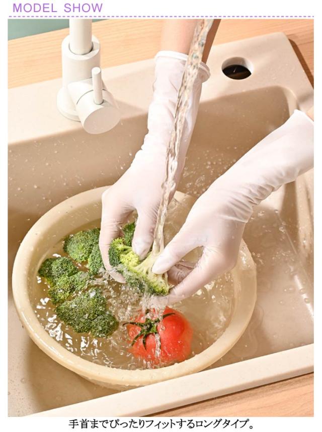 | 油に強くて丈夫!9inch!袖口までガードするロングタイプの使い捨て手袋。 手首までぴったりフィットするロングタイプ。 精密作業やメンテナンス作業など細かな作業に・毛染めの際に・掃除に・食器洗いに・洗車に・フットケアーに・介護などに使える使い捨ての手袋。 柔らかくて手にピッタリフィットするので、長時間の細かな作業に適しています! 手にピッタリフィットする超薄手仕上げにより、素手感覚でお使いいただけます! 左右兼用のため、片手でも使えて経済的です。 | |