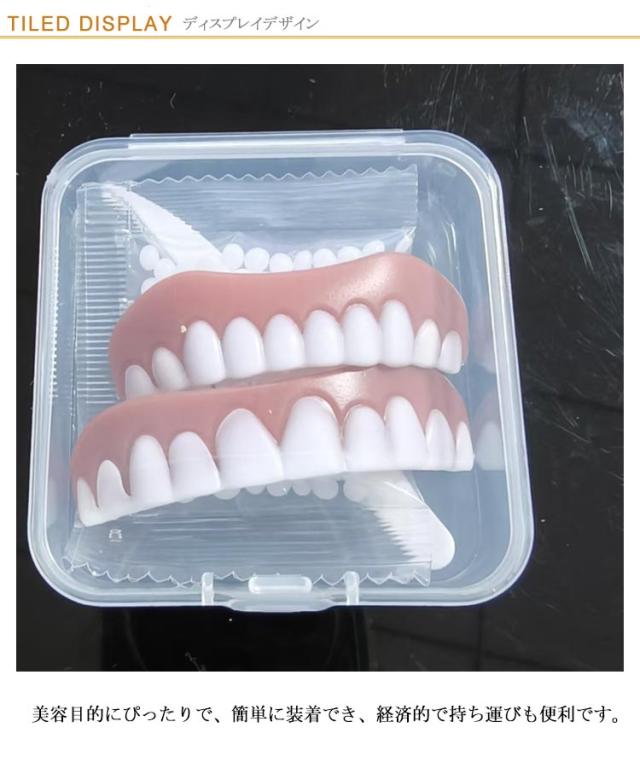 | 入れ歯2個セット!美容目的にぴったりで、簡単に装着でき、経済的で持ち運びも便利です。 自分で簡単に作れるので、どなたでも安心して使用できます。 飲食可能な設計により、面接や特別なイベントでも安心して笑顔を保てます。 | |